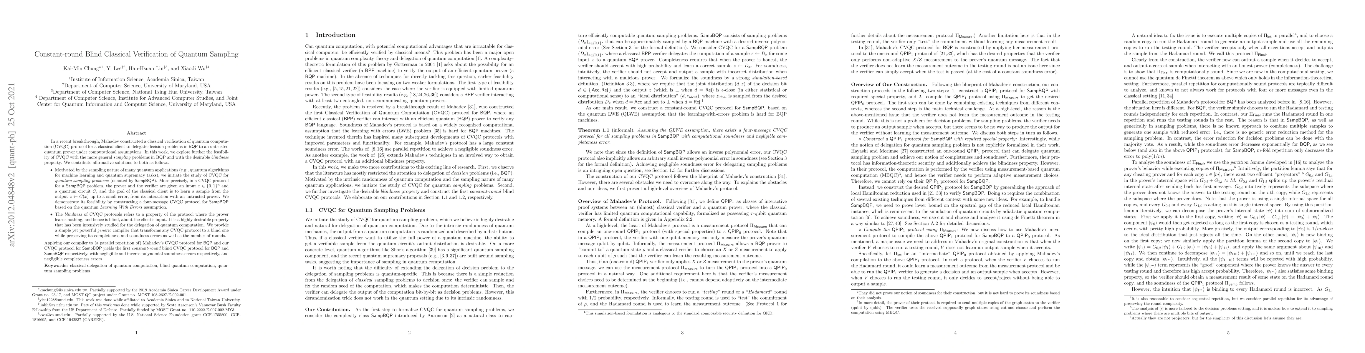 In a recent breakthrough, Mahadev constructed a classical verification of quantum computation (CVQC) protocol for a classical client to delegate decision problems in BQP to an untrusted quantum prover under computational assumptions. In this work, we explore further the feasibility of CVQC with the more general sampling problems in BQP and with the desirable blindness property. We contribute affirmative solutions to both as follows. (1) Motivated by the sampling nature of many quantum applications (e.g., quantum algorithms for machine learning and quantum supremacy tasks), we initiate the study of CVQC for quantum sampling problems (denoted by SampBQP). More precisely, in a CVQC protocol for a SampBQP problem, the prover and the verifier are given an input $x\in \{0,1\}^n$ and a quantum circuit $C$, and the goal of the classical client is to learn a sample from the output $z \leftarrow C(x)$ up to a small error, from its interaction with an untrusted prover. We demonstrate its feasibility by constructing a four-message CVQC protocol for SampBQP based on the quantum Learning With Error assumption. (2) The blindness of CVQC protocols refers to a property of the protocol where the prover learns nothing, and hence is blind, about the client's input. It is a highly desirable property that has been intensively studied for the delegation of quantum computation. We provide a simple yet powerful generic compiler that transforms any CVQC protocol to a blind one while preserving its completeness and soundness errors as well as the number of rounds. Applying our compiler to (a parallel repetition of) Mahadev's CVQC protocol for BQP and our CVQC protocol for SampBQP yields the first constant-round blind CVQC protocol for BQP and SampBQP respectively, with negligible and inverse polynomial soundness errors respectively, and negligible completeness errors.
