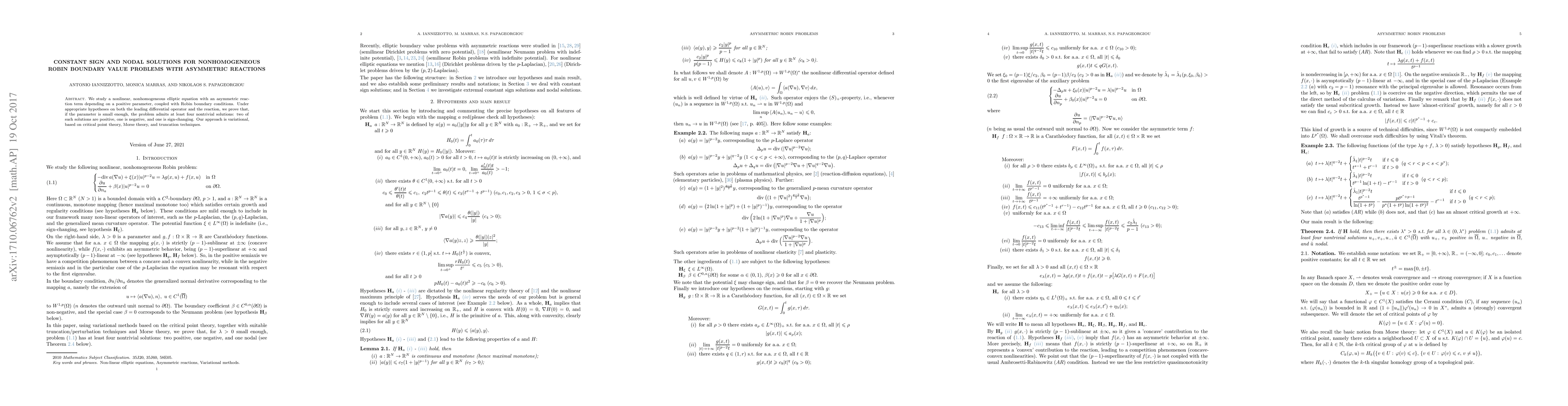 This paper investigates a nonlinear, nonhomogeneous elliptic equation with asymmetric reaction and Robin boundary conditions, proving the existence of at least four nontrivial solutions under small parameter conditions: two positive, one negative, and one sign-changing. The study employs variational methods, critical point theory, Morse theory, and truncation techniques.