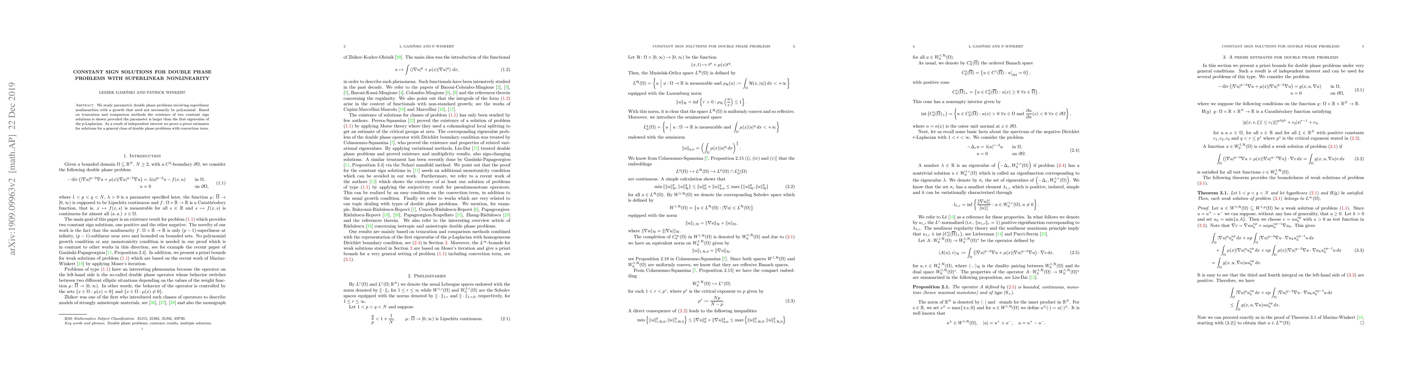 This paper demonstrates the existence of two constant sign solutions for parametric double phase problems with superlinear nonlinearities, using truncation and comparison methods. The solutions exist when the parameter exceeds the first eigenvalue of the $p$-Laplacian, and the study also includes a priori estimates for a broader class of double phase problems with convection terms.