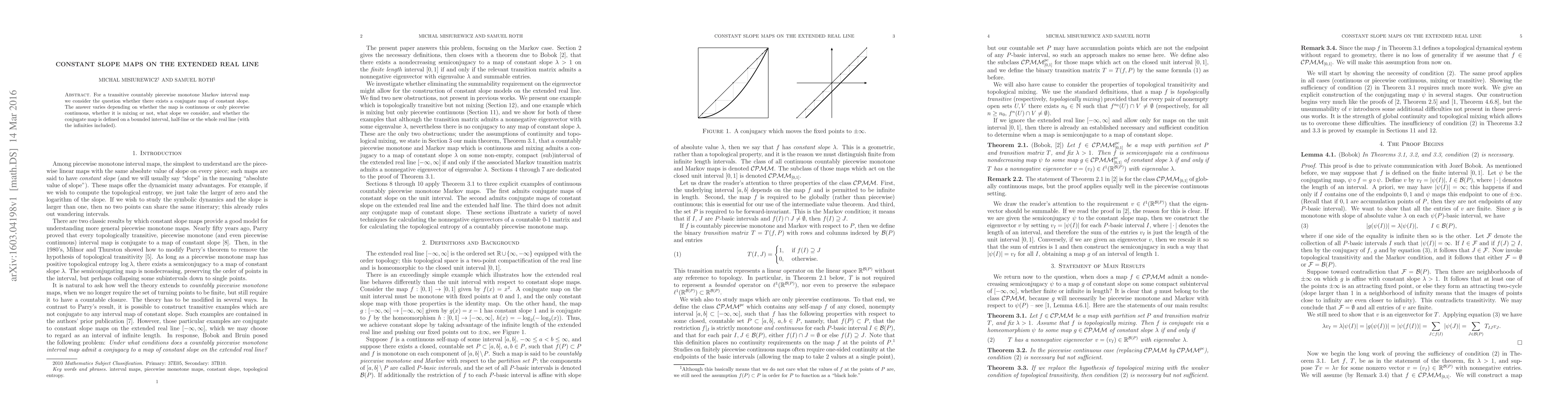 Researchers investigate whether a constant slope map exists as a conjugate for certain types of Markov interval maps on the real line, with results varying depending on map properties.
