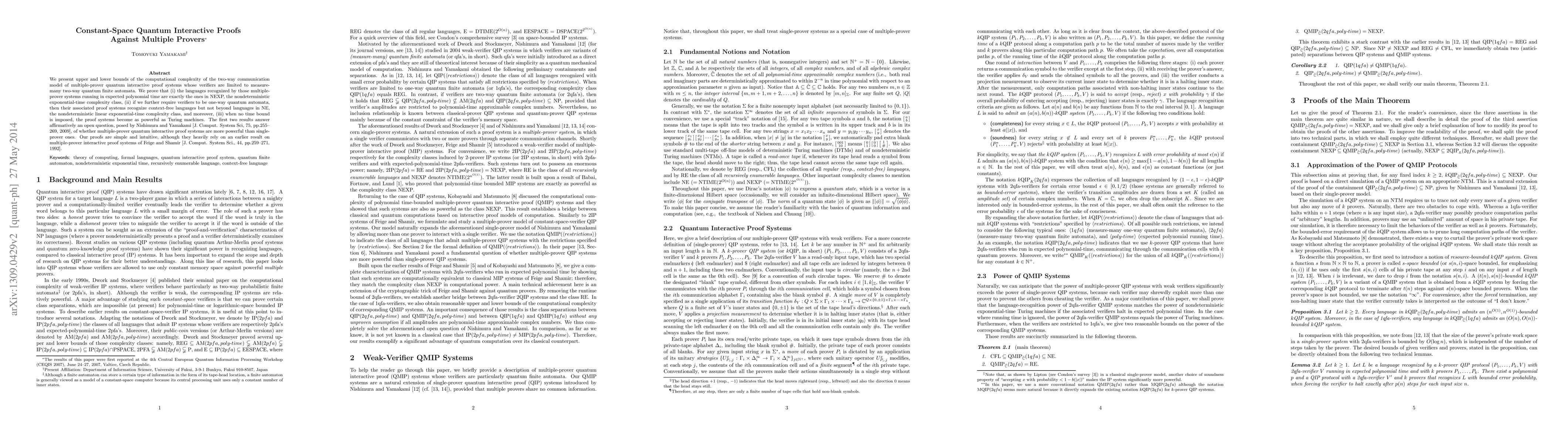 This paper establishes the computational complexity of multiple-prover quantum interactive proof systems under various constraints, showing they recognize NEXP languages when running in expected polynomial time. It also demonstrates that one-way quantum automata limit the systems to context-free languages, answering an open question on their power relative to single-prover systems.