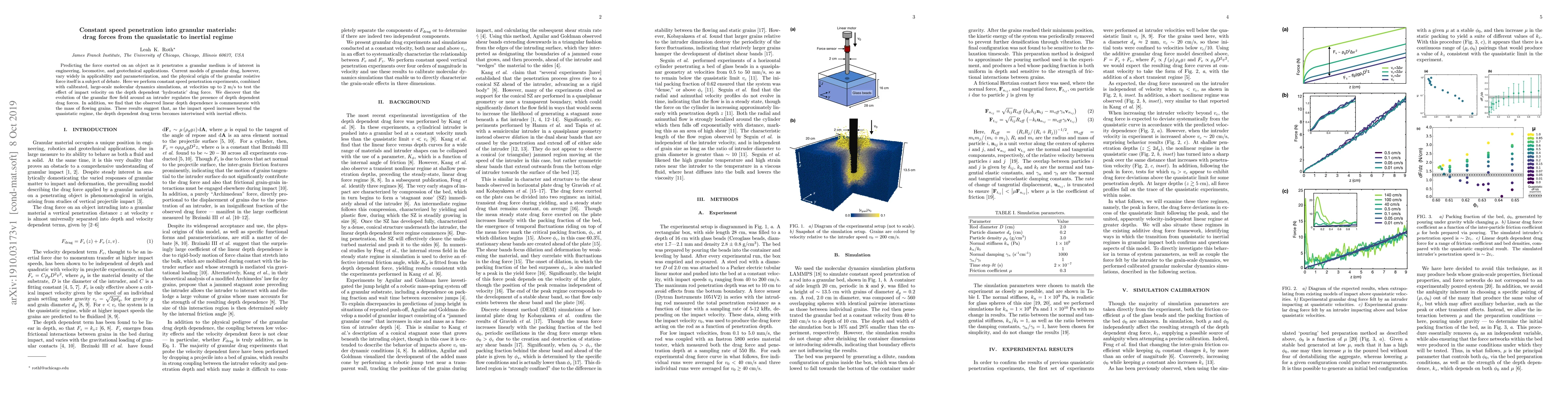 Predicting the force exerted on an object as it penetrates a granular medium is of interest in engineering, locomotive, and geotechnical applications. Current models of granular drag, however, vary widely in applicability and parameterization, and the physical origin of the granular resistive force itself is a subject of debate. Here we perform constant speed penetration experiments, combined with calibrated, large-scale molecular dynamics simulations, at velocities up to 2 m/s to test the effect of impact velocity on the depth dependent `hydrostatic' drag force. We discover that the evolution of the granular flow field around an intruder regulates the presence of depth dependent drag forces. In addition, we find that the observed linear depth dependence is commensurate with the mass of flowing grains. These results suggest that, as the impact speed increases beyond the quasistatic regime, the depth dependent drag term becomes intertwined with inertial effects.