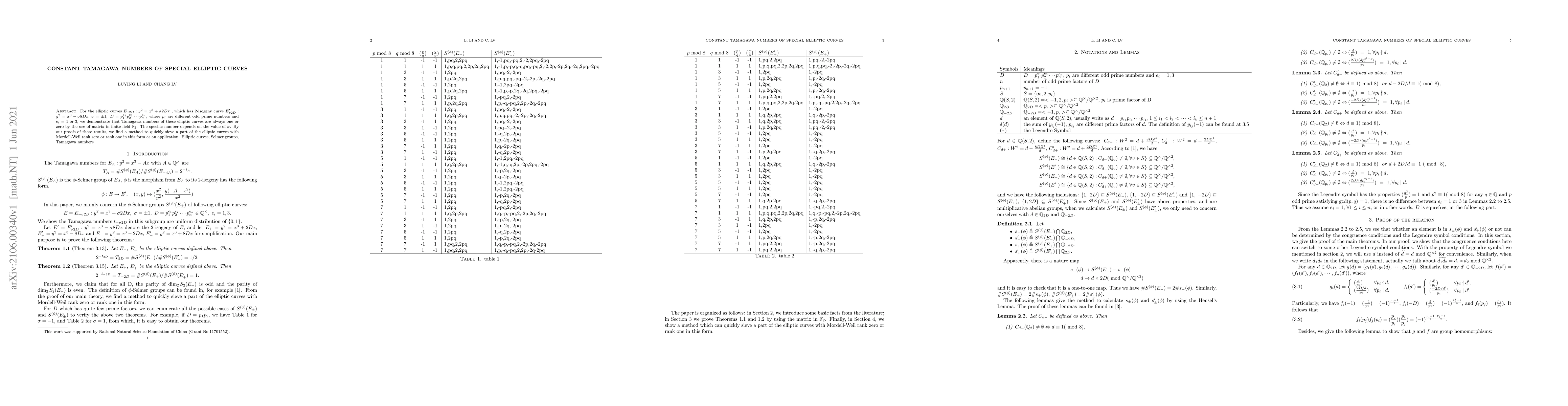 This paper proves that Tamagawa numbers for specific elliptic curves defined by $E_{\sigma 2D}$ and their 2-isogeny $E'_{\sigma 2D}$ are always one or zero, depending on $\sigma$, using matrix methods in $\mathbb F_2$. This result aids in efficiently identifying elliptic curves with Mordell-Weil rank zero or one.