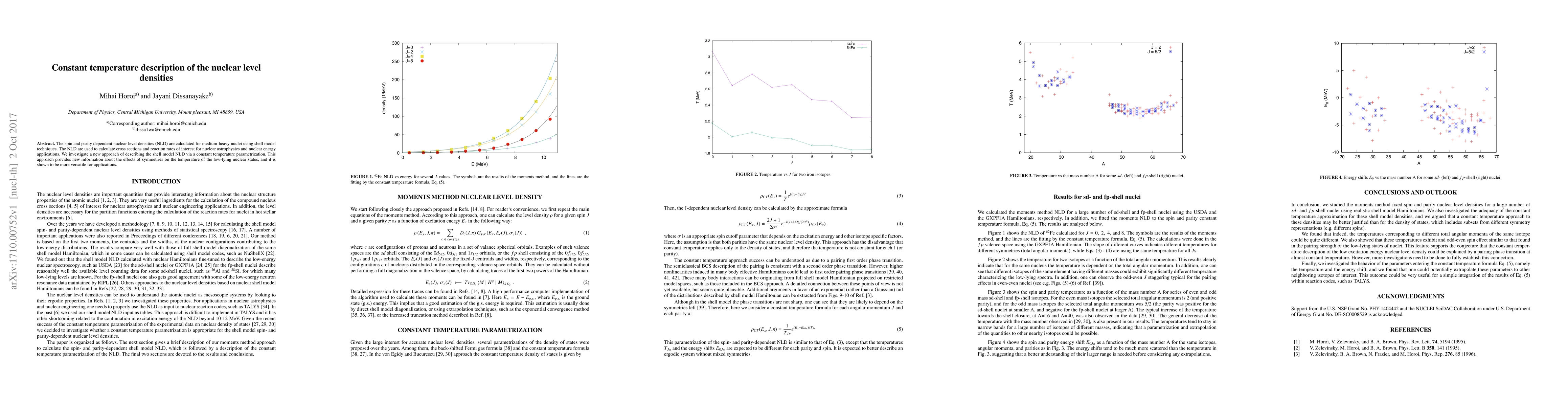 This paper calculates spin and parity dependent nuclear level densities for medium-heavy nuclei using shell model techniques, introducing a constant temperature parametrization approach. This method offers insights into symmetry effects on nuclear state temperatures and enhances its applicability for nuclear astrophysics and energy applications.