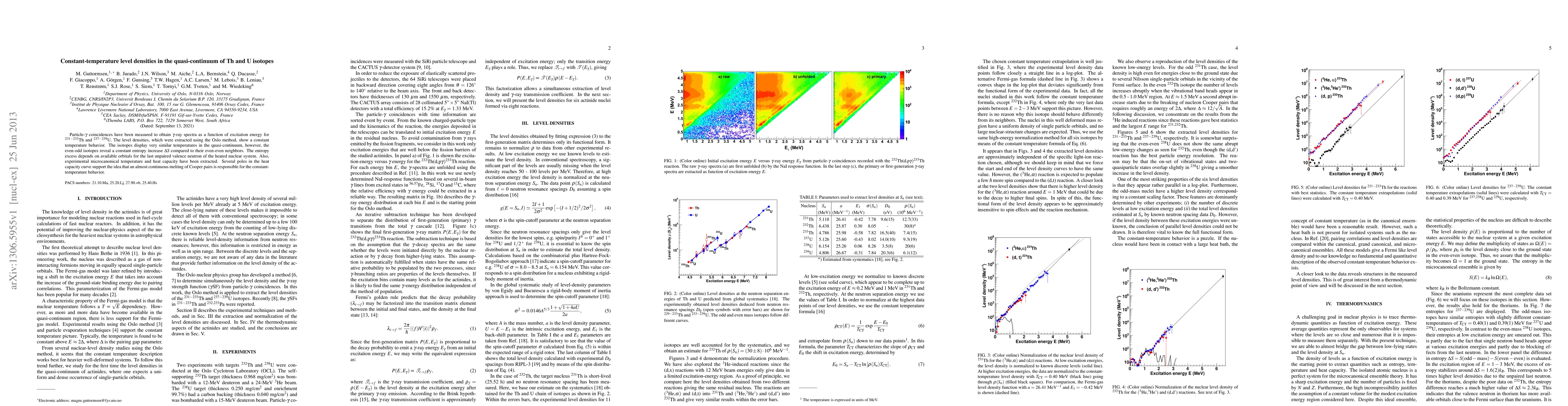 This study measures particle-gamma coincidences to determine level densities in Th and U isotopes, revealing constant temperature behavior and an entropy increase in even-odd isotopes due to unpaired valence neutrons. The findings suggest a continuous melting of Cooper pairs underpins the observed temperature constancy.