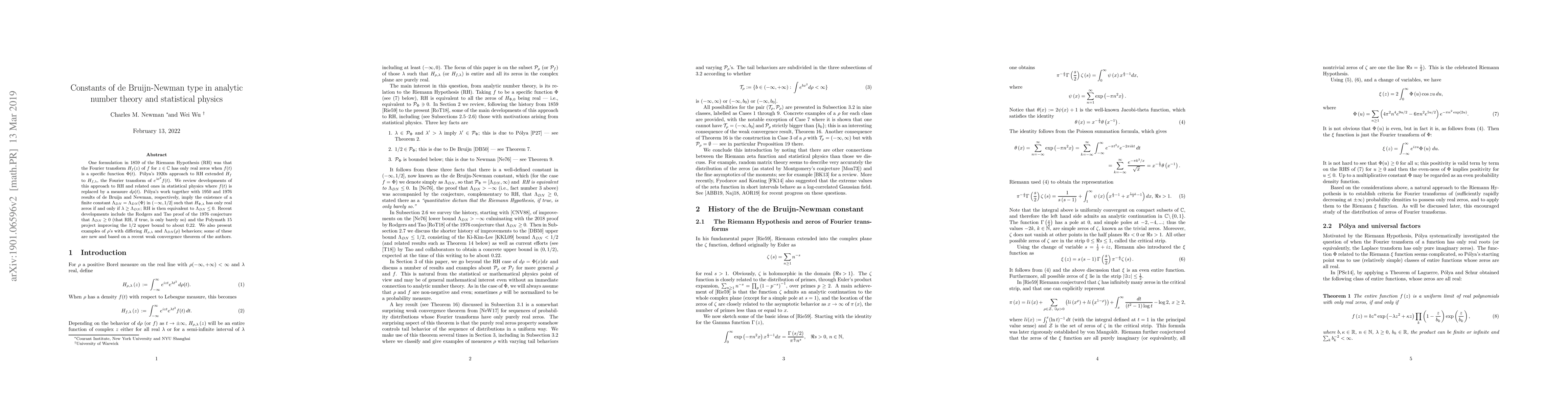 One formulation in 1859 of the Riemann Hypothesis (RH) was that the Fourier transform $H_f(z)$ of $f$ for $ z \in \mathbb{C}$ has only real zeros when $f(t)$ is a specific function $\Phi (t)$. P\'{o}lya's 1920s approach to RH extended $H_f$ to $H_{f,\lambda}$, the Fourier transform of $e^{\lambda t^2} f(t)$. We review developments of this approach to RH and related ones in statistical physics where $f(t)$ is replaced by a measure $d \rho (t)$. P\'{o}lya's work together with 1950 and 1976 results of de Bruijn and Newman, respectively, imply the existence of a finite constant $\Lambda_{DN} = \Lambda_{DN} (\Phi)$ in $(-\infty, 1/2]$ such that $H_{\Phi,\lambda}$ has only real zeros if and only if $\lambda \geq \Lambda_{DN}$; RH is then equivalent to $\Lambda_{DN} \leq 0$. Recent developments include the Rodgers and Tao proof of the 1976 conjecture that $\Lambda_{DN} \geq 0$ (that RH, if true, is only barely so) and the Polymath 15 project improving the $1/2$ upper bound to about $0.22$. We also present examples of $\rho$'s with differing $H_{\rho,\lambda}$ and $\Lambda_{DN} (\rho)$ behaviors; some of these are new and based on a recent weak convergence theorem of the authors.
