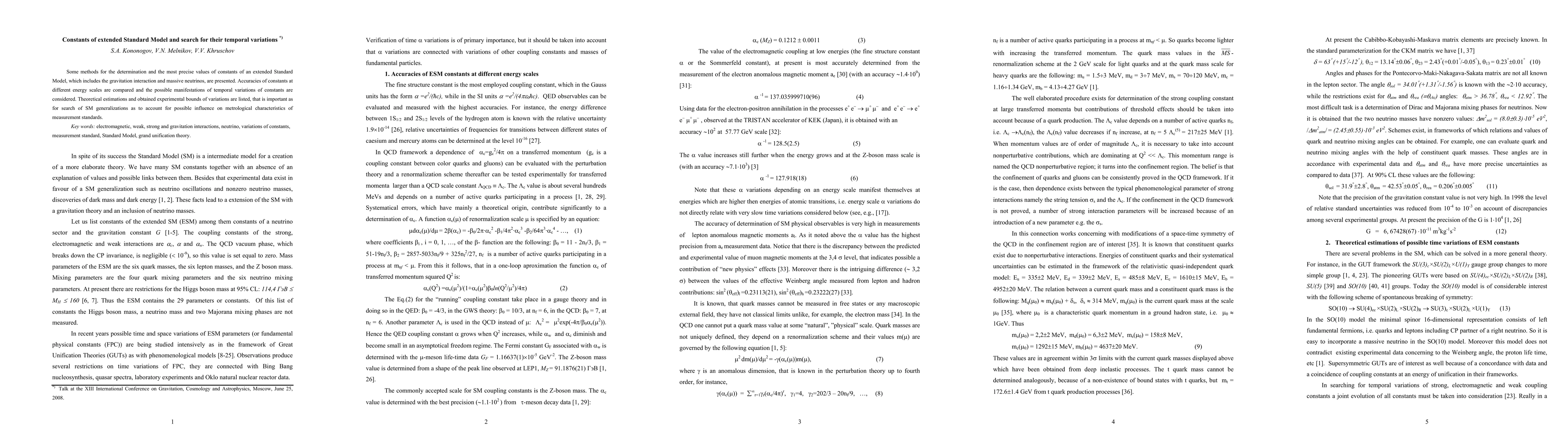 Researchers explored the possibility of temporal variations in constants of an extended Standard Model, including gravitational interactions and massive neutrinos, to inform metrological standards.