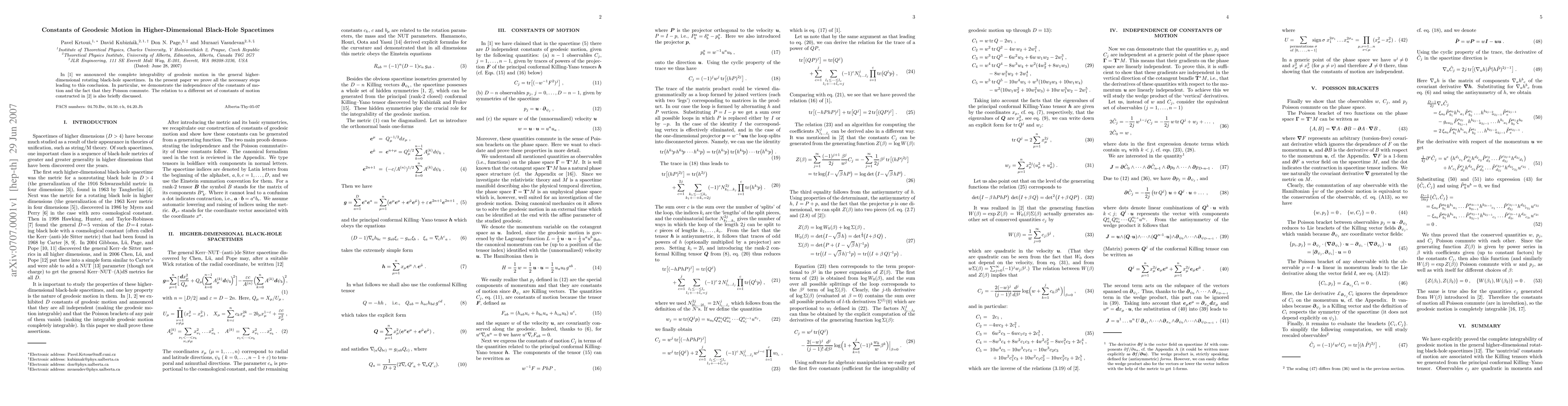 This paper proves the complete integrability of geodesic motion in higher-dimensional rotating black-hole spacetimes by demonstrating the independence and Poisson commutation of the constants of motion, supporting the findings from a previous announcement. It also briefly relates these constants to an alternative set from another study.