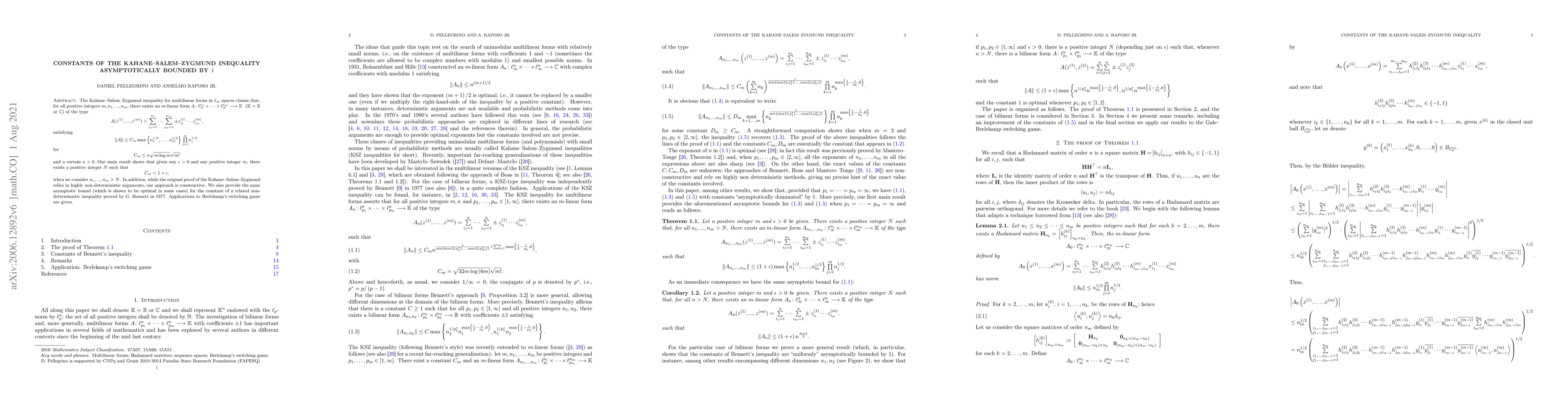 This paper demonstrates that the constants of the Kahane--Salem--Zygmund inequality can be asymptotically bounded by 1, showing that for sufficiently large dimensions, $C_m < 1 + \epsilon$ for any $\epsilon > 0$. The authors provide a constructive proof and extend the result to a related inequality by G. Bennett, with applications to Berlekamp's switching game.