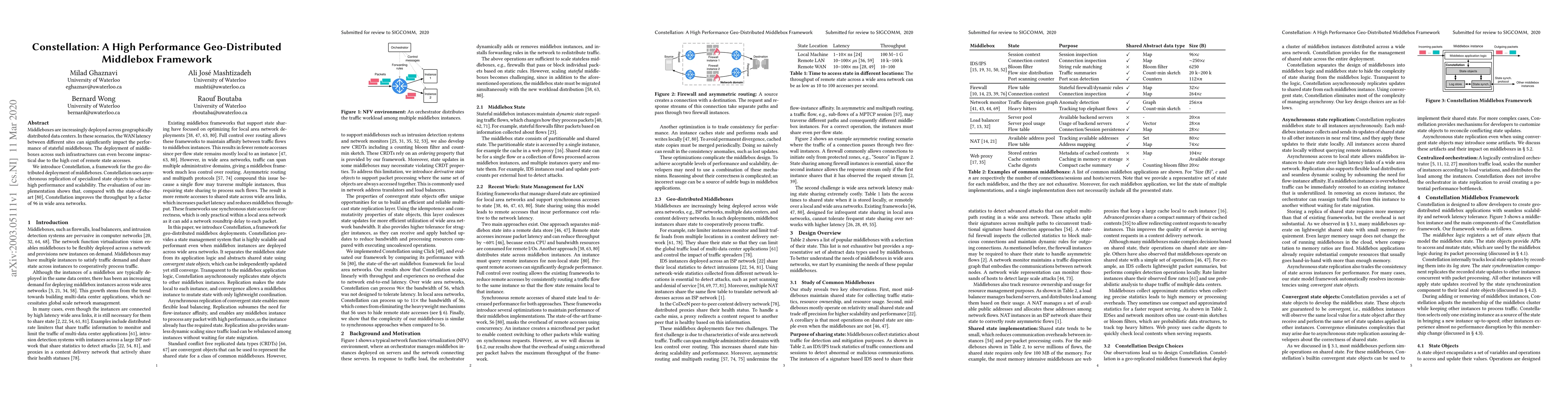 Constellation improves middlebox performance in geo-distributed networks through asynchronous state replication, achieving a 96x throughput boost over the current state-of-the-art.