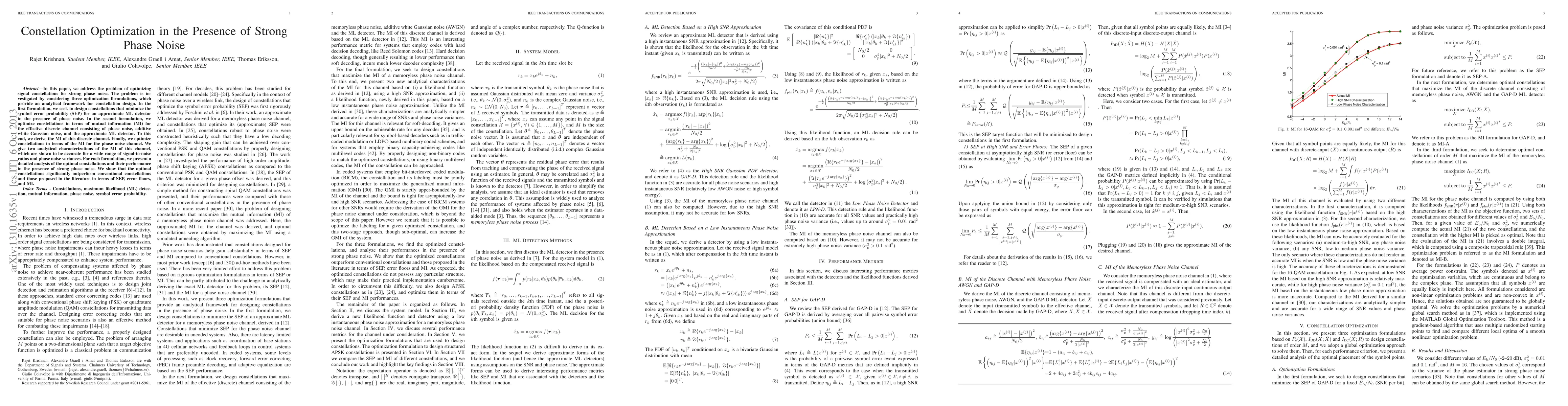 This paper optimizes signal constellations to minimize symbol error probability and maximize mutual information under strong phase noise, presenting analytical frameworks and demonstrating superior performance of the proposed optimal constellations compared to conventional ones.