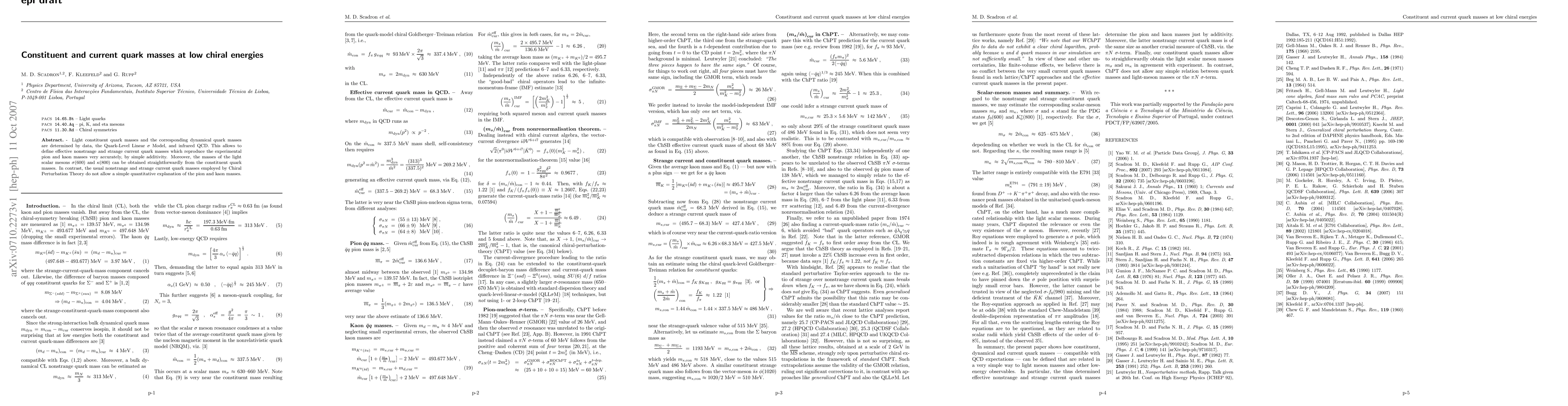 This paper determines light constituent quark masses using the Quark-Level Linear $\sigma$ Model and infrared QCD, defining effective current quark masses that accurately reproduce the experimental pion and kaon masses. It contrasts these with current quark masses used in Chiral Perturbation Theory, which fail to provide a simple quantitative explanation for these masses.
