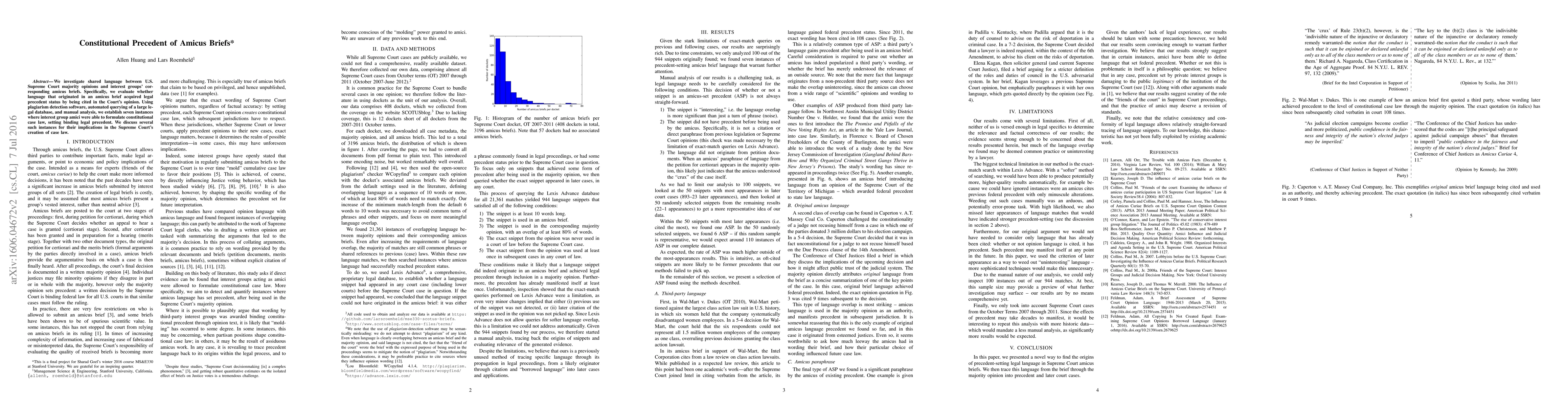 We investigate shared language between U.S. Supreme Court majority opinions and interest groups' corresponding amicus briefs. Specifically, we evaluate whether language that originated in an amicus brief acquired legal precedent status by being cited in the Court's opinion. Using plagiarism detection software, automated querying of a large legal database, and manual analysis, we establish seven instances where interest group amici were able to formulate constitutional case law, setting binding legal precedent. We discuss several such instances for their implications in the Supreme Court's creation of case law.