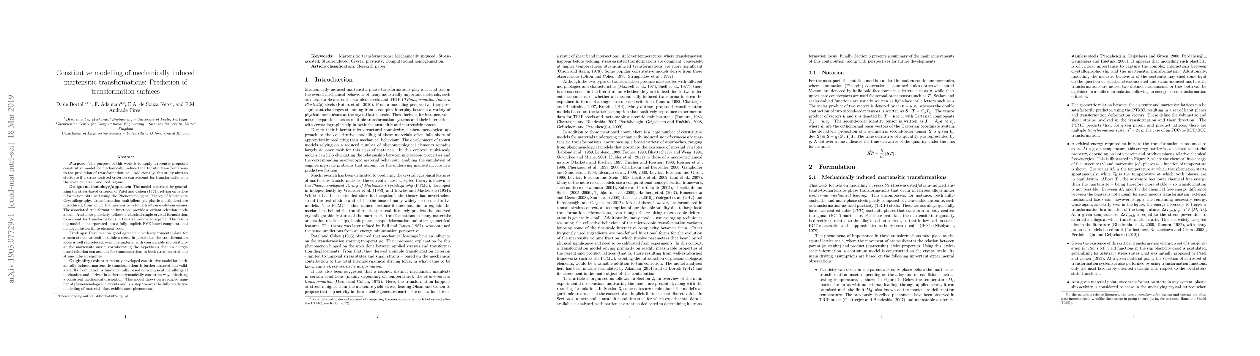 This study applies a constitutive model for mechanically induced martensitic transformations to predict transformation loci, showing good agreement with experimental data for a meta-stable austenitic stainless steel and validating the model's ability to account for transformations in both stress-assisted and strain-induced regimes.