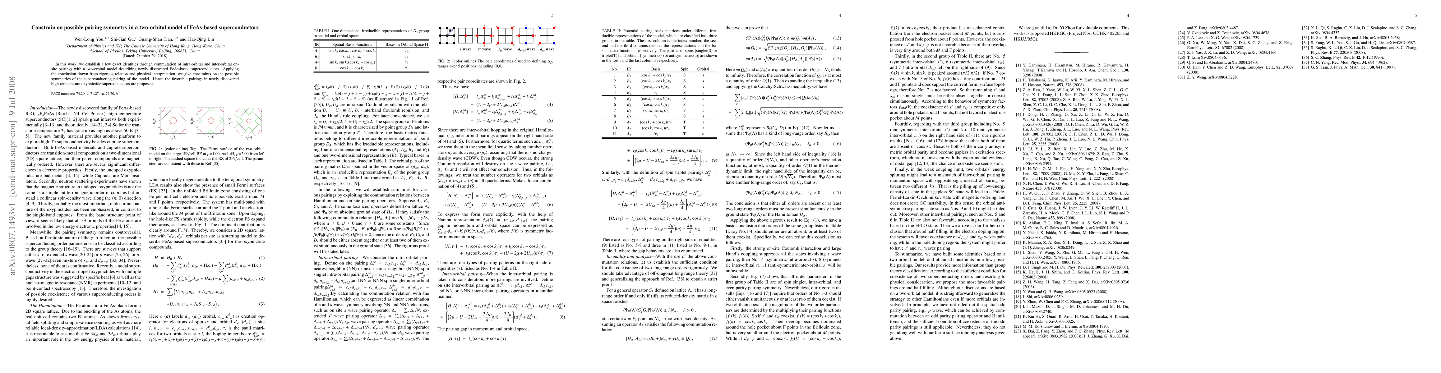 In this work, we establish a few exact identities through commutation of intra-orbital and inter-orbital on-site pairings with a two-orbital model describing newly discovered FeAs-based superconductors. Applying the conclusion drawn from rigorous relation and physical interpretation, we give constraints on the possible symmetries of the superconducting pairing of the model. Hence the favorable pairings in newly discovered high-temperature oxypnictide superconductors are proposed.