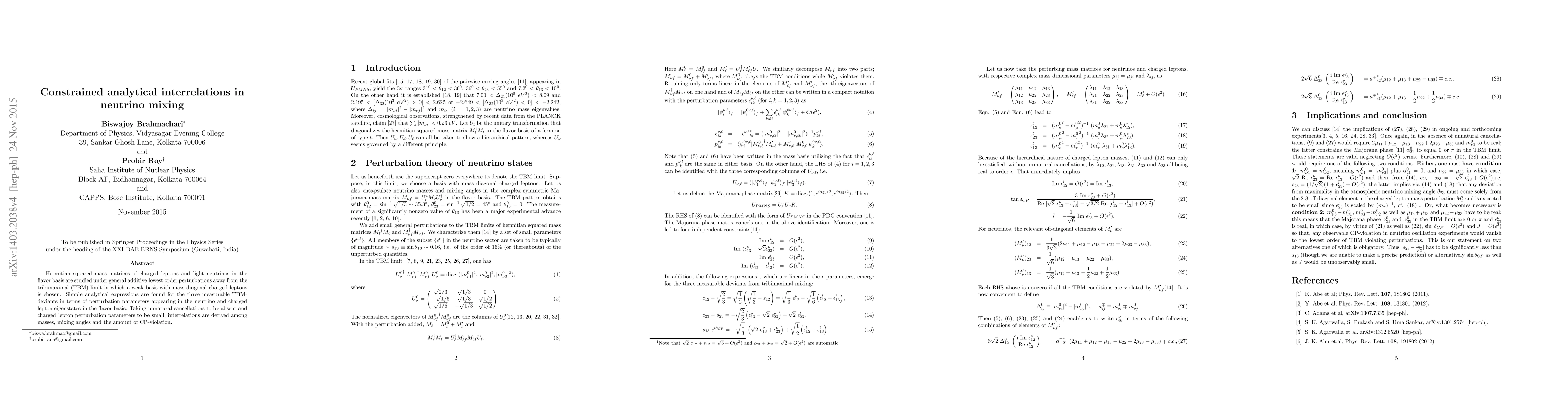 Hermitian squared mass matrices of charged leptons and light neutrinos in the flavor basis are studied under general additive lowest order perturbations away from the tribimaximal (TBM) limit in which a weak basis with mass diagonal charged leptons is chosen. Simple analytical expressions are found for the three measurable TBM-deviants in terms of perturbation parameters appearing in the neutrino and charged lepton eigenstates in the flavor basis. Taking unnatural cancellations to be absent and charged lepton perturbation parameters to be small, interrelations are derived among masses, mixing angles and the amount of CP-violation.