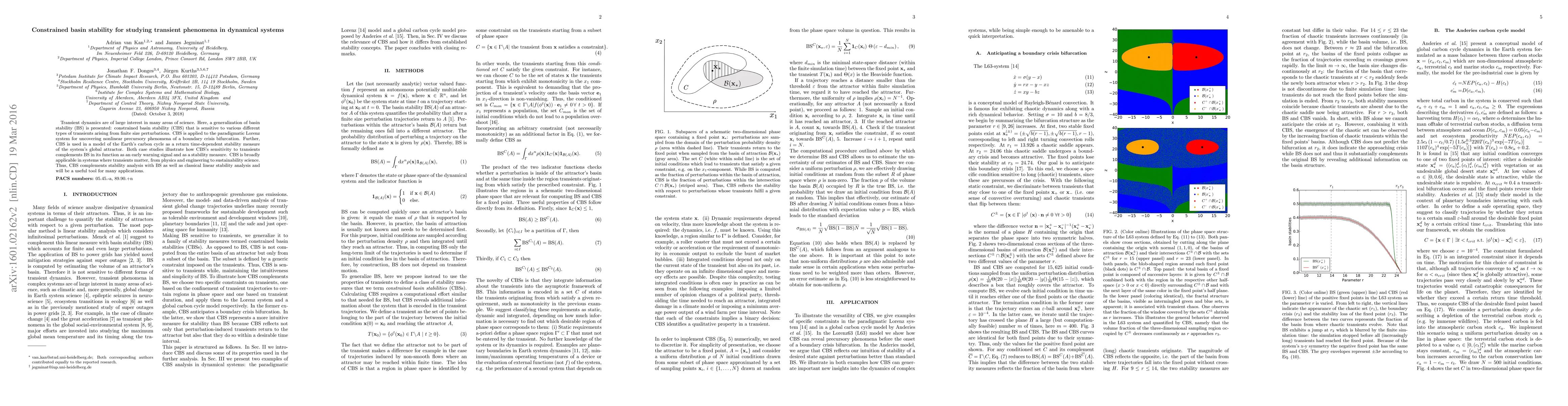 This paper introduces constrained basin stability (CBS) to study transient phenomena in dynamical systems, offering a sensitivity to transients that complements traditional basin stability. The method is demonstrated through the Lorenz system and a carbon cycle model, showing its utility as an early warning signal and stability measure in systems where transients are significant.