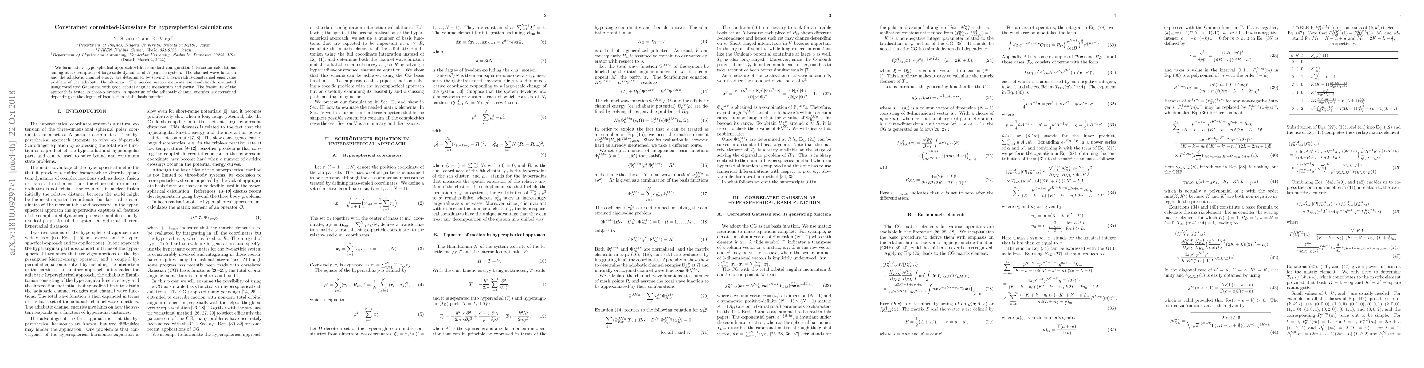 We formulate a hyperspherical approach within standard configuration interaction calculations aiming at a description of large-scale dynamics of $N$-particle system. The channel wave function and the adiabatic channel energy are determined by solving a hyperradius-constrained eigenvalue problem of the adiabatic Hamiltonian. The needed matrix elements are analytically evaluated using correlated Gaussians with good orbital angular momentum and parity. The feasibility of the approach is tested in three-$\alpha$ system. A spectrum of the adiabatic channel energies is determined depending on the degree of localization of the basis functions.