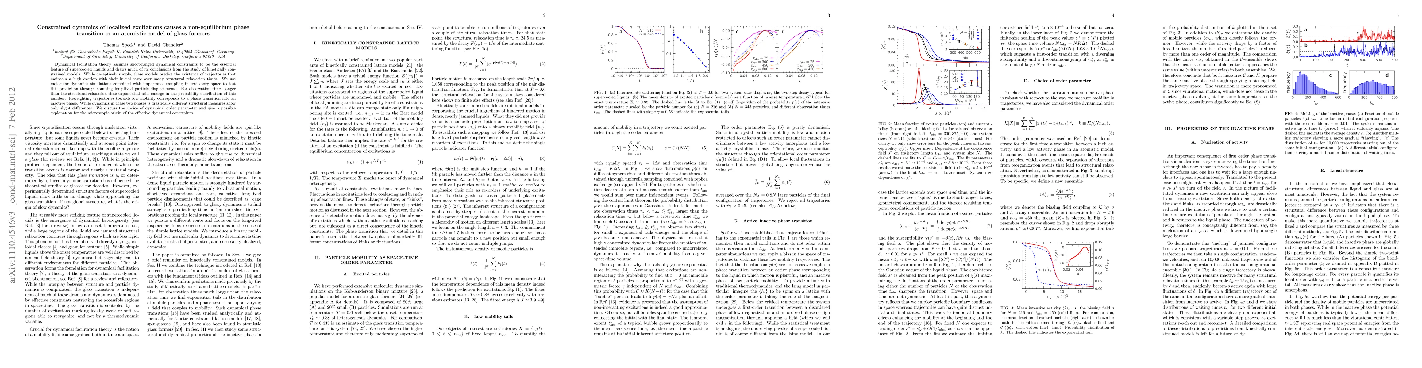 Dynamic facilitation theory assumes short-ranged dynamic constraints to be the essential feature of supercooled liquids and draws much of its conclusions from the study of kinetically constrained models. While deceptively simple, these models predict the existence of trajectories that maintain a high overlap with their initial state over many structural relaxation times. We use molecular dynamics simulations combined with importance sampling in trajectory space to test this prediction through counting long-lived particle displacements. For observation times longer than the structural relaxation time exponential tails emerge in the probability distribution of this number. Reweighting trajectories towards low mobility corresponds to a phase transition into an inactive phase. While dynamics in these two phases is drastically different structural measures show only slight differences. We discuss the choice of dynamic order parameter and give a possible explanation for the microscopic origin of the effective dynamic constraints.