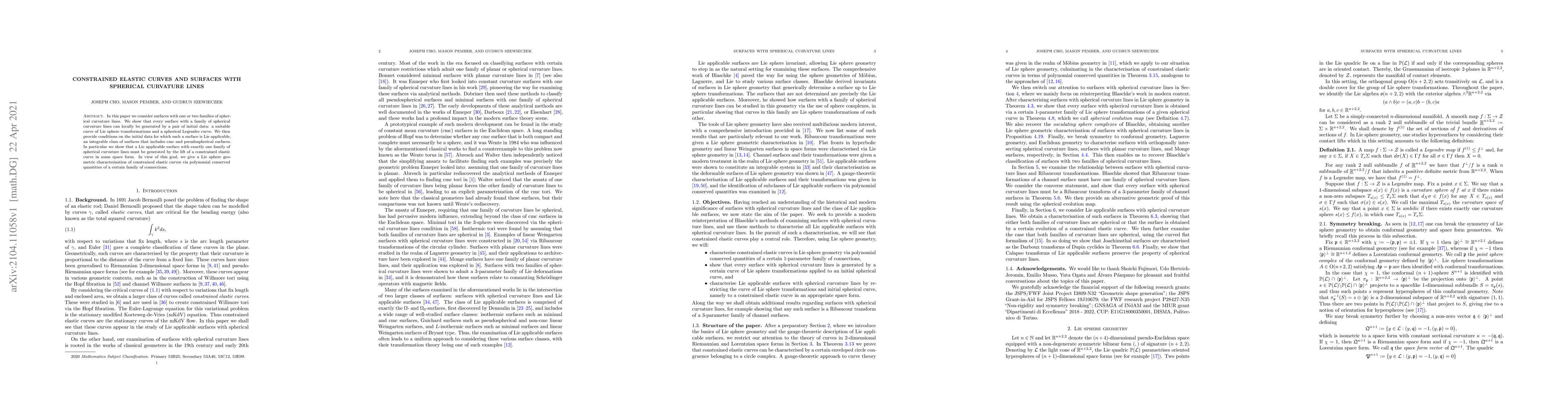 In this paper we consider surfaces with one or two families of spherical curvature lines. We show that every surface with a family of spherical curvature lines can locally be generated by a pair of initial data: a suitable curve of Lie sphere transformations and a spherical Legendre curve. We then provide conditions on the initial data for which such a surface is Lie applicable, an integrable class of surfaces that includes cmc and pseudospherical surfaces. In particular we show that a Lie applicable surface with exactly one family of spherical curvature lines must be generated by the lift of a constrained elastic curve in some space form. In view of this goal, we give a Lie sphere geometric characterisation of constrained elastic curves via polynomial conserved quantities of a certain family of connections.