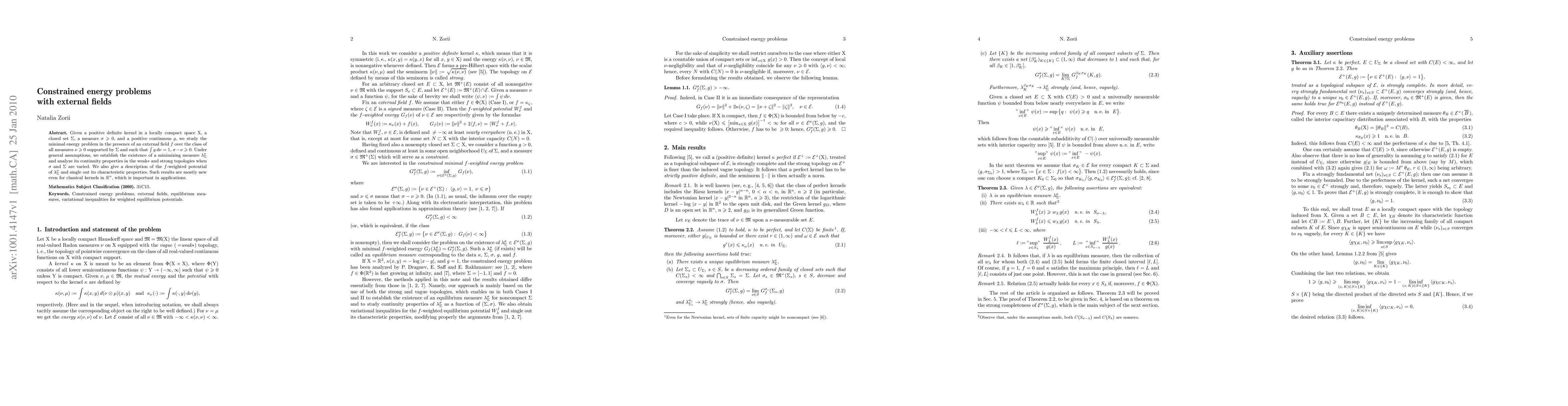 Given a positive definite kernel in a locally compact space, we study a minimal energy problem in the presence of an external field over the class of all nonnegative Radon measures that are supported by a given closed noncompact set, satisfy certain normalizing assumptions, and do not exceed a fixed measure serving as a constraint. Under general assumptions, we establish the existence of a minimizing measure and analyze its continuity properties in the weak* and strong topologies when the set and the constraint are both varied. We also give a description of the weighted potential of a minimizing measure and single out its characteristic properties. Such results are mostly new even for classical kernels, which is important in applications.