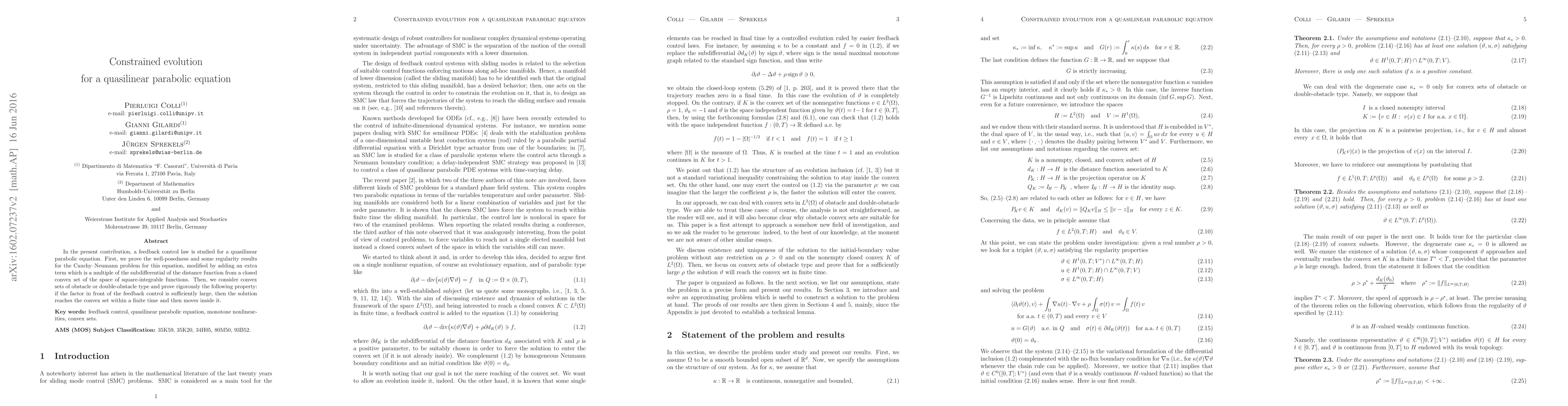 The paper presents a rigorous mathematical analysis of a constrained evolution problem for a quasilinear parabolic equation, including proofs of well-posedness and regularity, as well as explicit formulas for the Moreau-Yosida regularization.