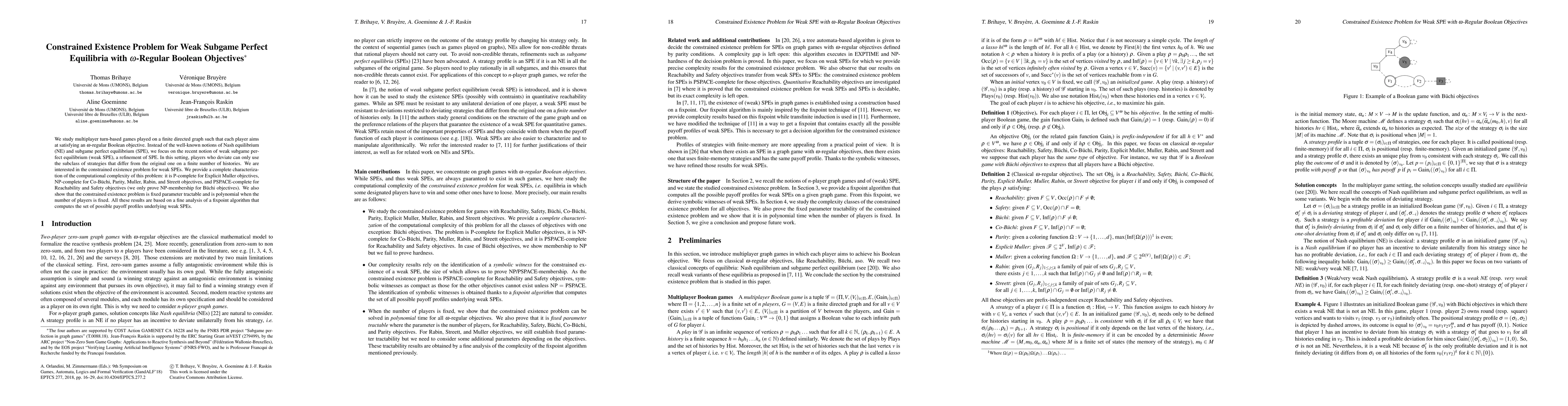 This paper studies constrained existence problems for weak subgame perfect equilibria in multiplayer games with omega-regular Boolean objectives, finding it is P-complete or NP-complete depending on the objective type.