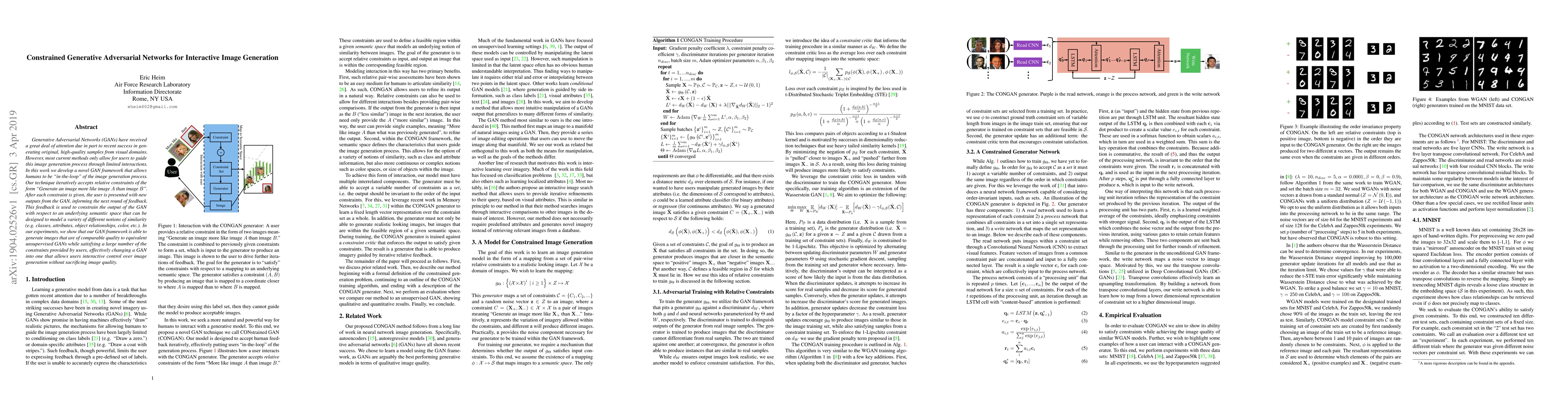 This paper introduces a novel GAN framework that enables interactive image generation by allowing users to provide relative constraints, guiding the GAN to generate images more aligned with their preferences. The method iteratively refines outputs based on user feedback, maintaining image quality while accommodating numerous user-defined constraints.