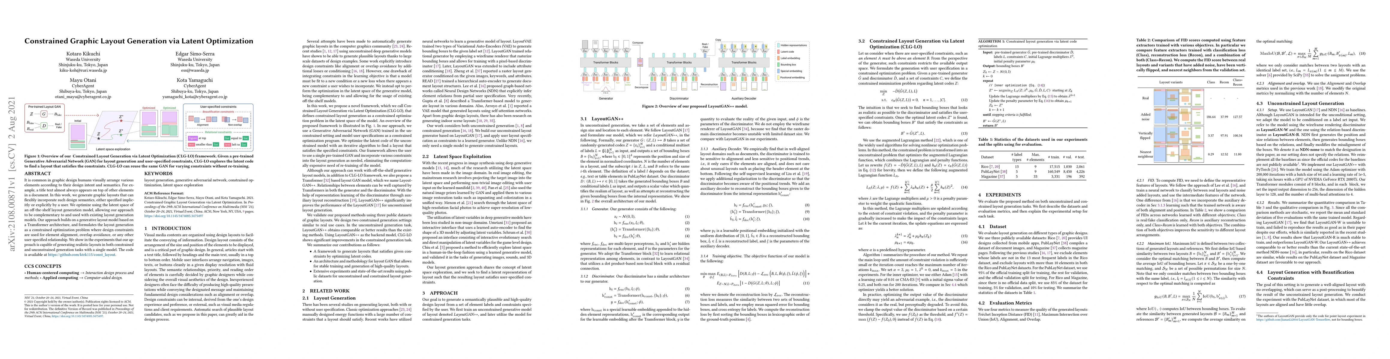 This paper presents a method for generating graphic layouts that incorporate user-specified design semantics through latent optimization of a Transformer-based generative model. The approach formulates layout generation as a constrained optimization problem, enabling flexible alignment and avoidance of element overlap.