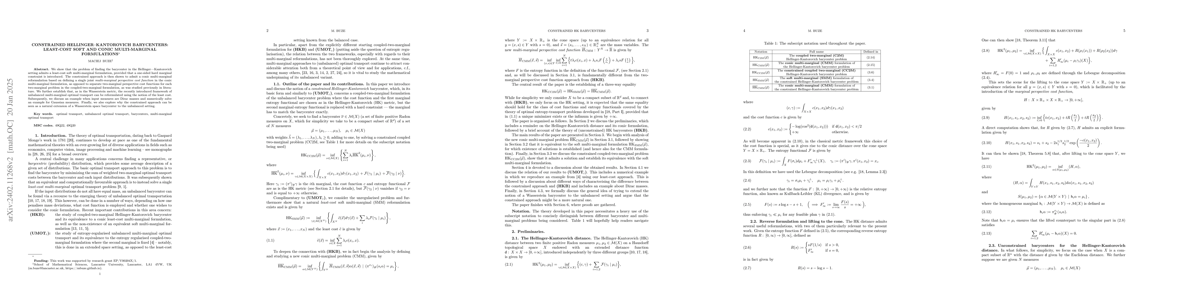 We show that the problem of finding the barycenter in the Hellinger-Kantorovich setting admits a least-cost soft multi-marginal formulation, provided that a one-sided hard marginal constraint is introduced. The constrained approach is then shown to admit a conic multi-marginal reformulation based on defining a single joint multi-marginal perspective cost function in the conic multi-marginal formulation, as opposed to separate two-marginal perspective cost functions for each two-marginal problem in the coupled-two-marginal formulation, as was studied previously in literature. We further establish that, as in the Wasserstein metric, the recently introduced framework of unbalanced multi-marginal optimal transport can be reformulated using the notion of the least cost. Subsequently, we discuss an example when input measures are Dirac masses and numerically solve an example for Gaussian measures. Finally, we also explore why the constrained approach can be seen as a natural extension of a Wasserstein space barycenter to the unbalanced setting.