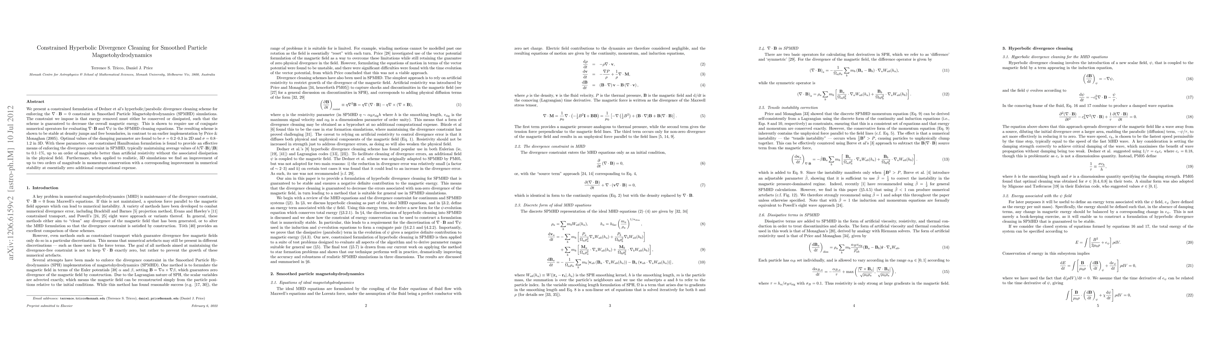 We present a constrained formulation of Dedner et al's hyperbolic/parabolic divergence cleaning scheme for enforcing the \nabla\dot B = 0 constraint in Smoothed Particle Magnetohydrodynamics (SPMHD) simulations. The constraint we impose is that energy removed must either be conserved or dissipated, such that the scheme is guaranteed to decrease the overall magnetic energy. This is shown to require use of conjugate numerical operators for evaluating \nabla\dot B and \nabla{\psi} in the SPMHD cleaning equations. The resulting scheme is shown to be stable at density jumps and free boundaries, in contrast to an earlier implementation by Price & Monaghan (2005). Optimal values of the damping parameter are found to be {\sigma} = 0.2-0.3 in 2D and {\sigma} = 0.8-1.2 in 3D. With these parameters, our constrained Hamiltonian formulation is found to provide an effective means of enforcing the divergence constraint in SPMHD, typically maintaining average values of h |\nabla\dot B| / |B| to 0.1-1%, up to an order of magnitude better than artificial resistivity without the associated dissipation in the physical field. Furthermore, when applied to realistic, 3D simulations we find an improvement of up to two orders of magnitude in momentum conservation with a corresponding improvement in numerical stability at essentially zero additional computational expense.