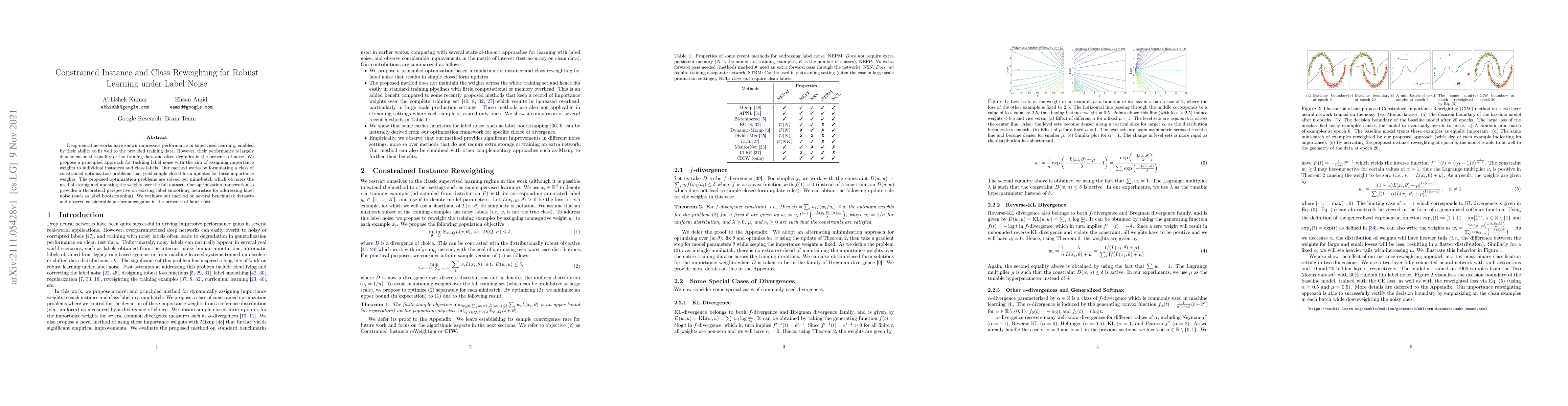 Deep neural networks have shown impressive performance in supervised learning, enabled by their ability to fit well to the provided training data. However, their performance is largely dependent on the quality of the training data and often degrades in the presence of noise. We propose a principled approach for tackling label noise with the aim of assigning importance weights to individual instances and class labels. Our method works by formulating a class of constrained optimization problems that yield simple closed form updates for these importance weights. The proposed optimization problems are solved per mini-batch which obviates the need of storing and updating the weights over the full dataset. Our optimization framework also provides a theoretical perspective on existing label smoothing heuristics for addressing label noise (such as label bootstrapping). We evaluate our method on several benchmark datasets and observe considerable performance gains in the presence of label noise.