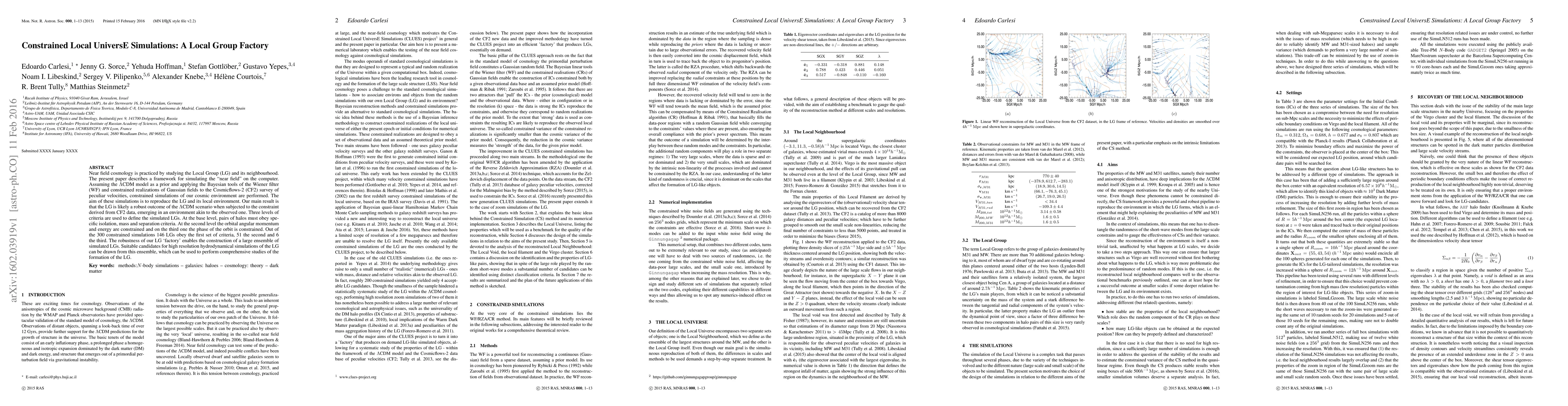 Near field cosmology is practiced by studying the Local Group (LG) and its neighbourhood. The present paper describes a framework for simulating the near field on the computer. Assuming the LCDM model as a prior and applying the Bayesian tools of the Wiener filter (WF) and constrained realizations of Gaussian fields to the Cosmicflows-2 (CF2) survey of peculiar velocities, constrained simulations of our cosmic environment are performed. The aim of these simulations is to reproduce the LG and its local environment. Our main result is that the LG is likely a robust outcome of the LCDM scenario when subjected to the constraint derived from CF2 data, emerging in an environment akin to the observed one. Three levels of criteria are used to define the simulated LGs. At the base level, pairs of halos must obey specific isolation, mass and separation criteria. At the second level the orbital angular momentum and energy are constrained and on the third one the phase of the orbit is constrained. Out of the 300 constrained simulations 146 LGs obey the first set of criteria, 51 the second and 6 the third. The robustness of our LG factory enables the construction of a large ensemble of simulated LGs. Suitable candidates for high resolution hydrodynamical simulations of the LG can be drawn from this ensemble, which can be used to perform comprehensive studies of the formation of the LG