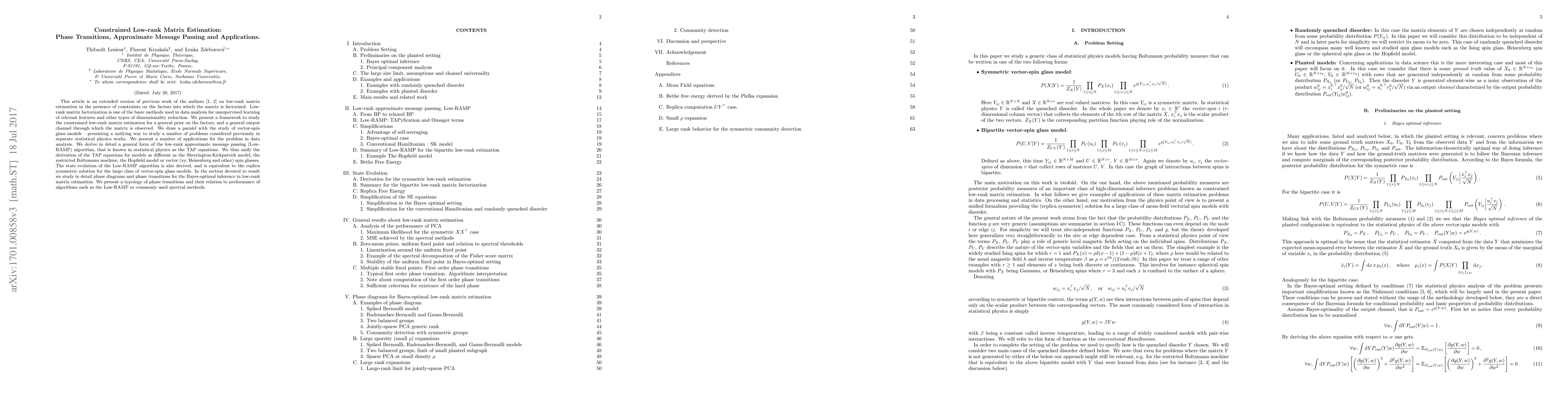 This paper extends previous work on constrained low-rank matrix estimation, presenting a unifying framework for studying various statistical physics models through the lens of approximate message passing. It derives the Low-RAMP algorithm and its state evolution, analyzing phase transitions and their implications for algorithm performance in data analysis applications.