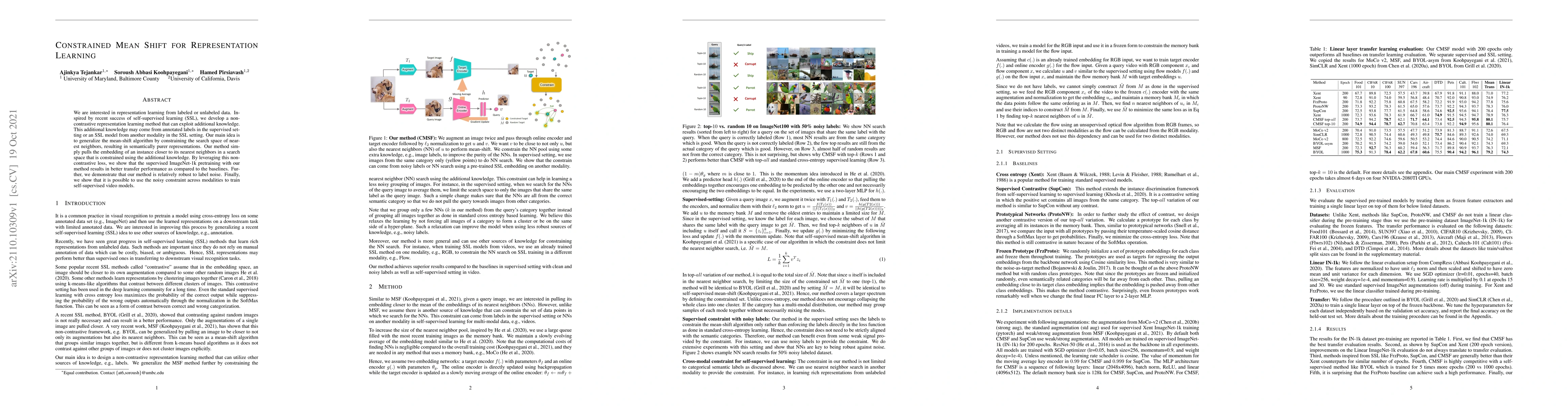 We are interested in representation learning from labeled or unlabeled data. Inspired by recent success of self-supervised learning (SSL), we develop a non-contrastive representation learning method that can exploit additional knowledge. This additional knowledge may come from annotated labels in the supervised setting or an SSL model from another modality in the SSL setting. Our main idea is to generalize the mean-shift algorithm by constraining the search space of nearest neighbors, resulting in semantically purer representations. Our method simply pulls the embedding of an instance closer to its nearest neighbors in a search space that is constrained using the additional knowledge. By leveraging this non-contrastive loss, we show that the supervised ImageNet-1k pretraining with our method results in better transfer performance as compared to the baselines. Further, we demonstrate that our method is relatively robust to label noise. Finally, we show that it is possible to use the noisy constraint across modalities to train self-supervised video models.