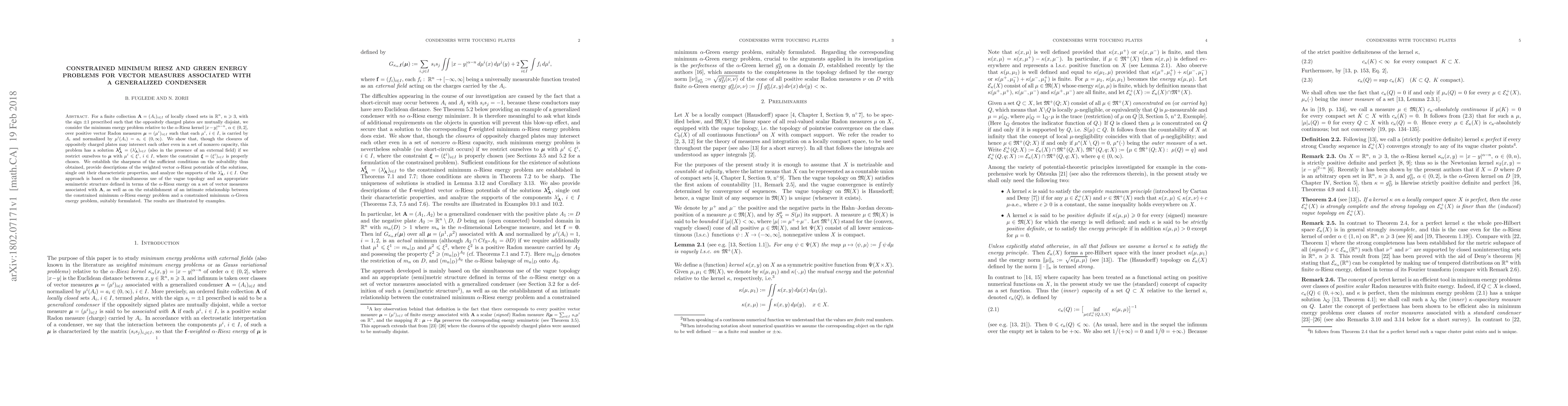 For a finite collection $\mathbf A=(A_i)_{i\in I}$ of locally closed sets in $\mathbb R^n$, $n\geqslant3$, with the sign $\pm1$ prescribed such that the oppositely charged plates are mutually disjoint, we consider the minimum energy problem relative to the $\alpha$-Riesz kernel $|x-y|^{\alpha-n}$, $\alpha\in(0,2]$, over positive vector Radon measures $\boldsymbol\mu=(\mu^i)_{i\in I}$ such that each $\mu^i$, $i\in I$, is carried by $A_i$ and normalized by $\mu^i(A_i)=a_i\in(0,\infty)$. We show that, though the closures of oppositely charged plates may intersect each other even in a set of nonzero capacity, this problem has a solution $\boldsymbol\lambda^{\boldsymbol\xi}_{\mathbf A}=(\lambda^i_{\mathbf A})_{i\in I}$ (also in the presence of an external field) if we restrict ourselves to $\boldsymbol\mu$ with $\mu^i\leqslant\xi^i$, $i\in I$, where the constraint $\boldsymbol\xi=(\xi^i)_{i\in I}$ is properly chosen. We establish the sharpness of the sufficient conditions on the solvability thus obtained, provide descriptions of the weighted vector $\alpha$-Riesz potentials of the solutions, single out their characteristic properties, and analyze the supports of the $\lambda^i_{\mathbf A}$, $i\in I$. Our approach is based on the simultaneous use of the vague topology and an appropriate semimetric structure defined in terms of the $\alpha$-Riesz energy on a set of vector measures associated with $\mathbf A$, as well as on the establishment of an intimate relationship between the constrained minimum $\alpha$-Riesz energy problem and a constrained minimum $\alpha$-Green energy problem, suitably formulated. The results are illustrated by examples.