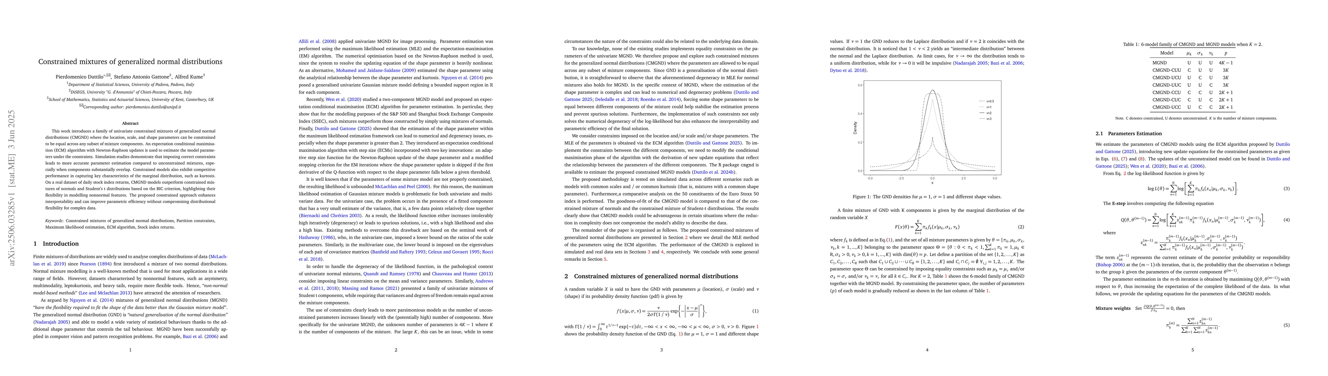 The research introduces constrained mixtures of generalized normal distributions (CMGND) and employs an expectation conditional maximisation (ECM) algorithm with Newton-Raphson updates for parameter estimation under constraints.