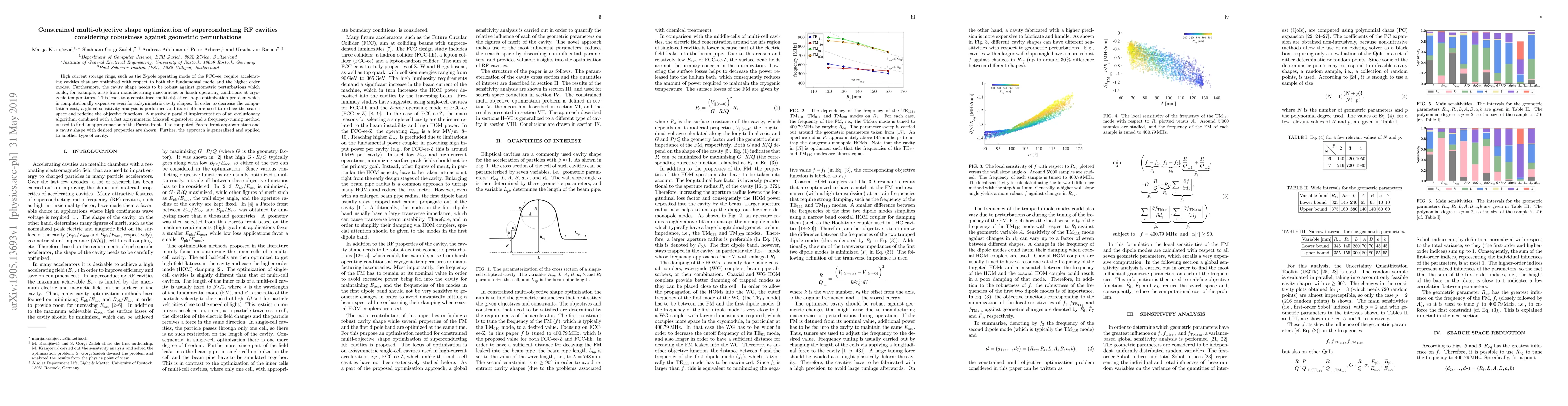 High current storage rings, such as the Z-pole operating mode of the FCC-ee, require accelerating cavities that are optimized with respect to both the fundamental mode and the higher order modes. Furthermore, the cavity shape needs to be robust against geometric perturbations which could, for example, arise from manufacturing inaccuracies or harsh operating conditions at cryogenic temperatures. This leads to a constrained multi-objective shape optimization problem which is computationally expensive even for axisymmetric cavity shapes. In order to decrease the computation cost, a global sensitivity analysis is performed and its results are used to reduce the search space and redefine the objective functions. A massively parallel implementation of an evolutionary algorithm, combined with a fast axisymmetric Maxwell eigensolver and a frequency-tuning method is used to find an approximation of the Pareto front. The computed Pareto front approximation and a cavity shape with desired properties are shown. Further, the approach is generalized and applied to another type of cavity.