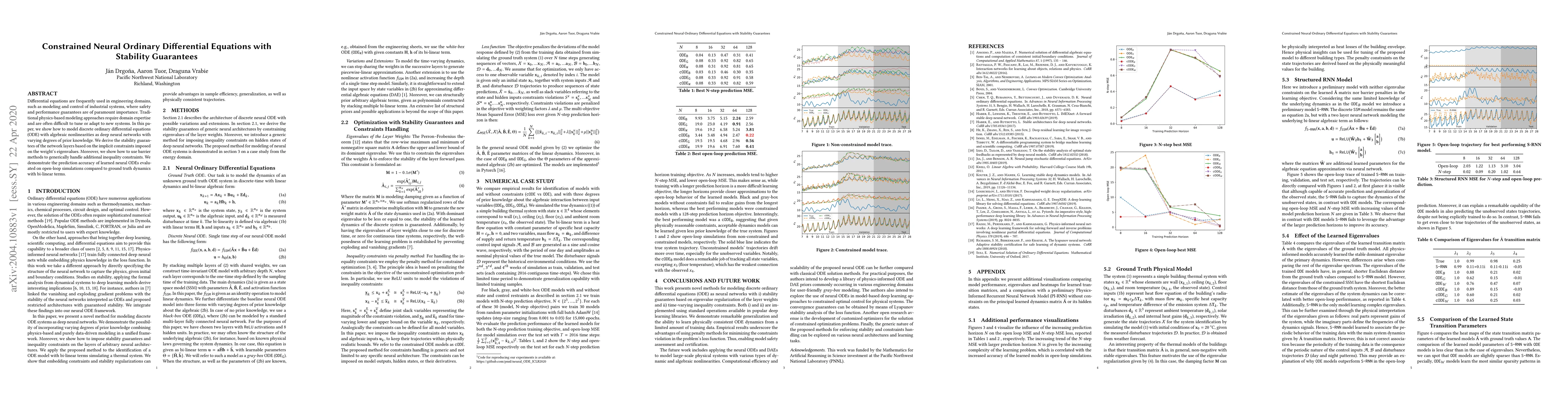 This paper proposes a method to model discrete ordinary differential equations with neural networks, incorporating stability guarantees through implicit constraints on weight eigenvalues. It also demonstrates the use of barrier methods to manage additional inequality constraints, and evaluates the accuracy of learned neural ODEs against ground truth dynamics.