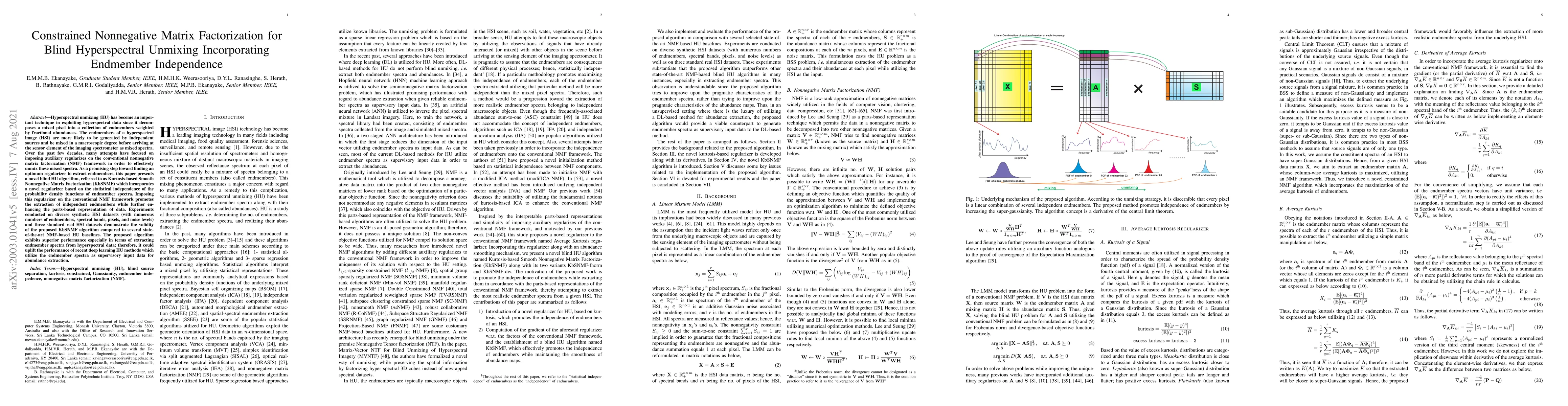 Hyperspectral unmixing (HU) has become an important technique in exploiting hyperspectral data since it decomposes a mixed pixel into a collection of endmembers weighted by fractional abundances. The endmembers of a hyperspectral image (HSI) are more likely to be generated by independent sources and be mixed in a macroscopic degree before arriving at the sensor element of the imaging spectrometer as mixed spectra. Over the past few decades, many attempts have focused on imposing auxiliary constraints on the conventional nonnegative matrix factorization (NMF) framework in order to effectively unmix these mixed spectra. As a promising step toward finding an optimum constraint to extract endmembers, this paper presents a novel blind HU algorithm, referred to as Kurtosis-based Smooth Nonnegative Matrix Factorization (KbSNMF) which incorporates a novel constraint based on the statistical independence of the probability density functions of endmember spectra. Imposing this constraint on the conventional NMF framework promotes the extraction of independent endmembers while further enhancing the parts-based representation of data. Experiments conducted on diverse synthetic HSI datasets (with numerous numbers of endmembers, spectral bands, pixels, and noise levels) and three standard real HSI datasets demonstrate the validity of the proposed KbSNMF algorithm compared to several state-of-the-art NMF-based HU baselines. The proposed algorithm exhibits superior performance especially in terms of extracting endmember spectra from hyperspectral data; therefore, it could uplift the performance of recent deep learning HU methods which utilize the endmember spectra as supervisory input data for abundance extraction.