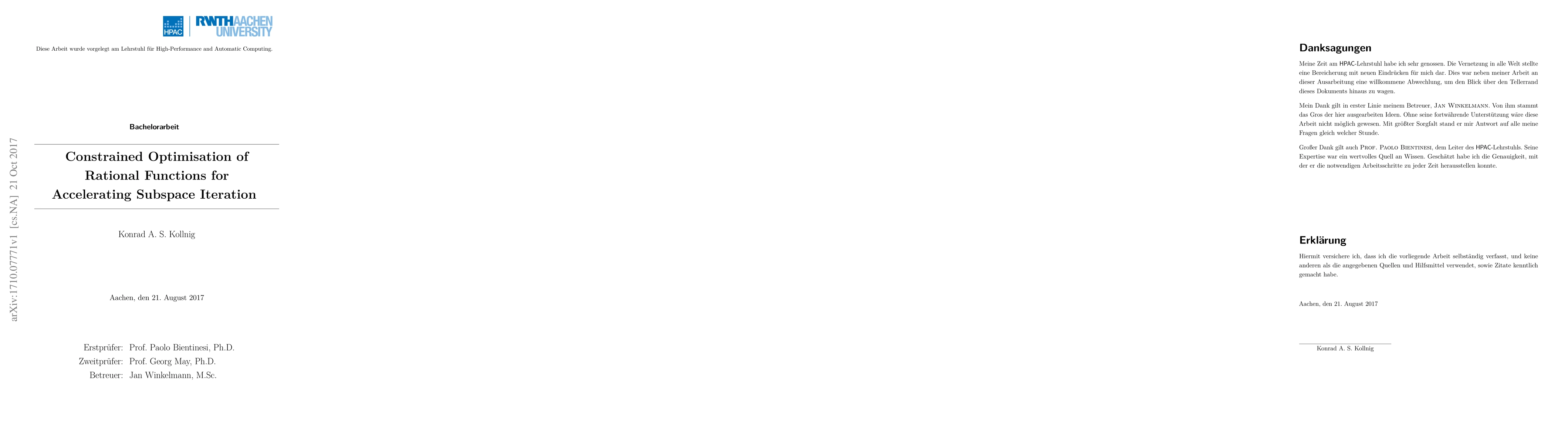 Earlier this decade, the so-called FEAST algorithm was released for computing the eigenvalues of a matrix in a given interval. Previously, rational filter functions have been examined as a parameter of FEAST. In this thesis, we expand on existing work with the following contributions: (i) Obtaining well-performing rational filter functions via standard minimisation algorithms, (ii) Obtaining constrained rational filter functions efficiently, and (iii) Improving existing rational filter functions algorithmically. Using our new rational filter functions, FEAST requires up to one quarter fewer iterations on average compared to state-of-art rational filter functions.