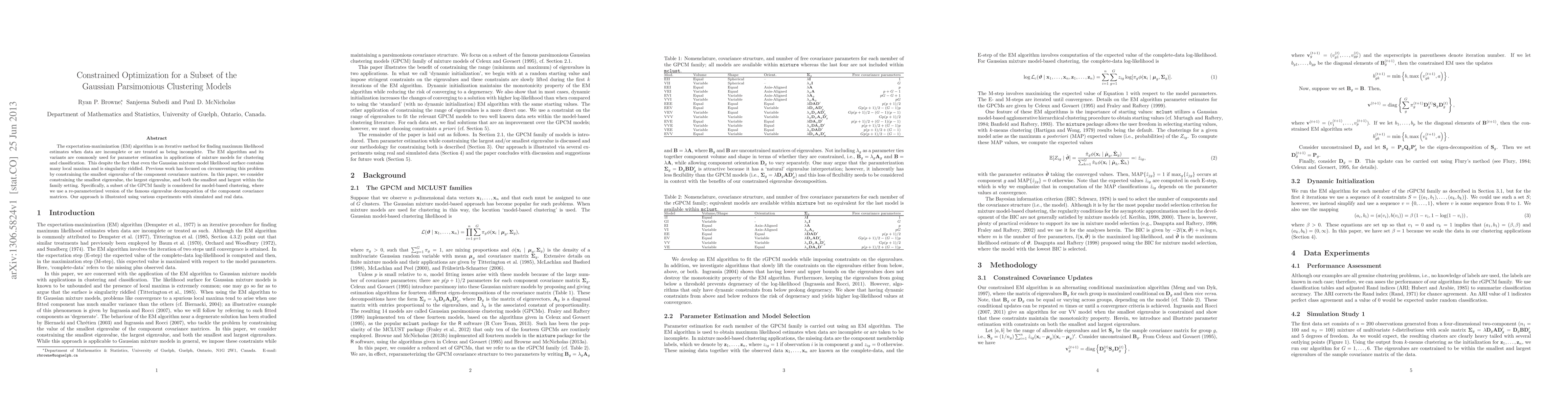This paper explores constrained optimization techniques for a subset of Gaussian parsimonious clustering models (GPCM) using the EM algorithm. It investigates constraints on the smallest and largest eigenvalues of component covariance matrices to improve model-based clustering, demonstrated through experiments with both simulated and real data.