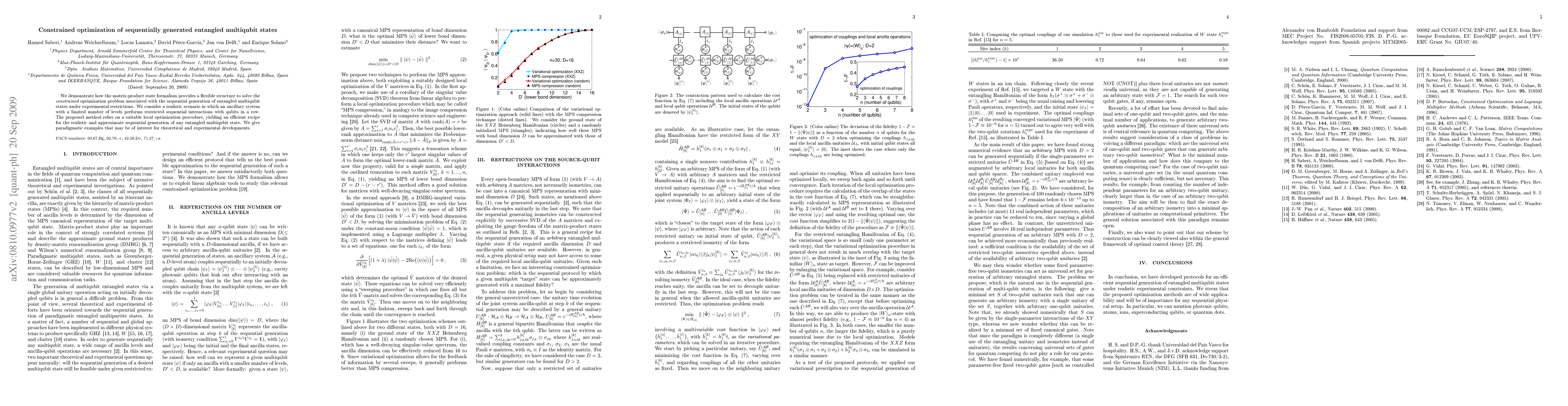 This paper presents a matrix-product state formalism to solve the optimization problem for generating entangled multiqubit states under experimental constraints, using a local optimization procedure for realistic and approximate sequential interactions. It provides practical examples relevant to both theoretical and experimental quantum research.