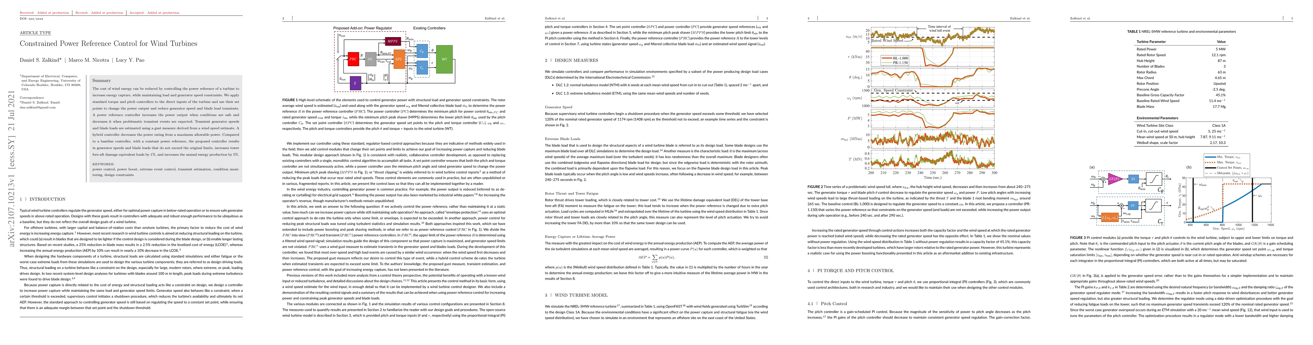 The cost of wind energy can be reduced by controlling the power reference of a turbine to increase energy capture, while maintaining load and generator speed constraints. We apply standard torque and pitch controllers to the direct inputs of the turbine and use their set points to change the power output and reduce generator speed and blade load transients. A power reference controller increases the power output when conditions are safe and decreases it when problematic transient events are expected. Transient generator speeds and blade loads are estimated using a gust measure derived from a wind speed estimate. A hybrid controller decreases the power rating from a maximum allowable power. Compared to a baseline controller, with a constant power reference, the proposed controller results in generator speeds and blade loads that do not exceed the original limits, increases tower fore-aft damage equivalent loads by 1%, and increases the annual energy production by 5%.
