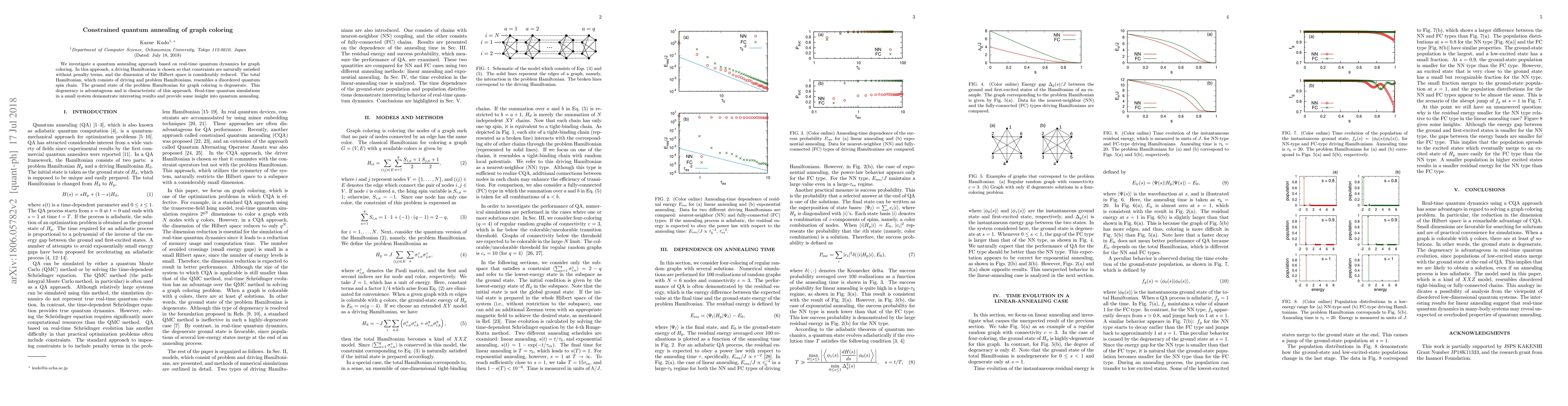 Researchers explore a new quantum annealing approach for graph coloring that uses real-time dynamics to naturally satisfy constraints without penalty terms. This method reduces the Hilbert space dimension and yields interesting results in small system simulations.