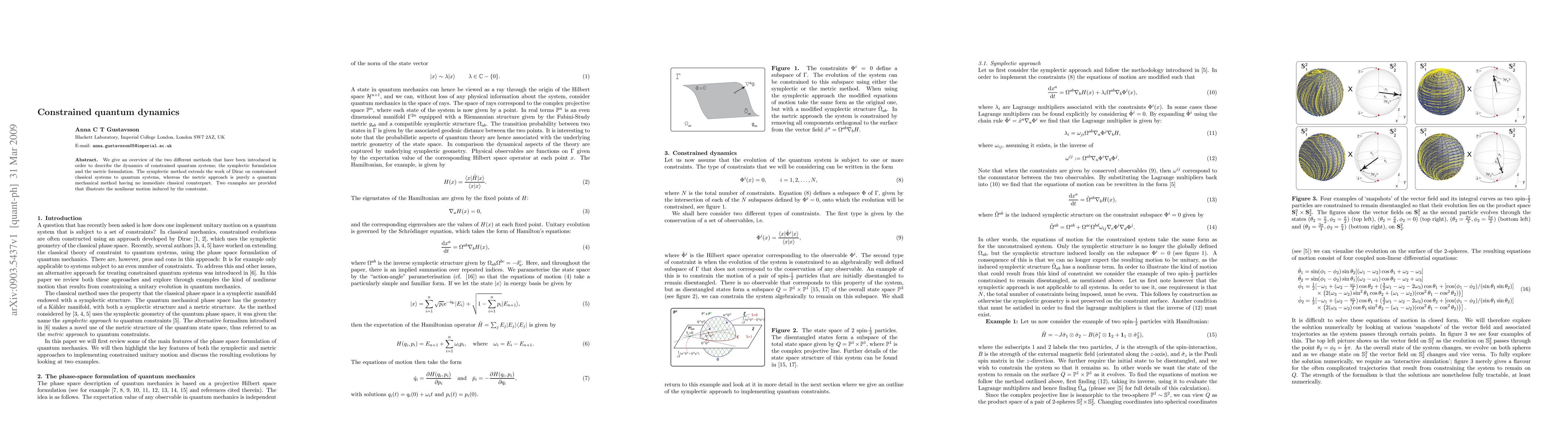 This paper reviews two methods for describing the dynamics of constrained quantum systems: the symplectic formulation, which extends Dirac's classical approach to quantum mechanics, and the metric formulation, a purely quantum method. Examples are provided to illustrate the nonlinear effects of constraints.