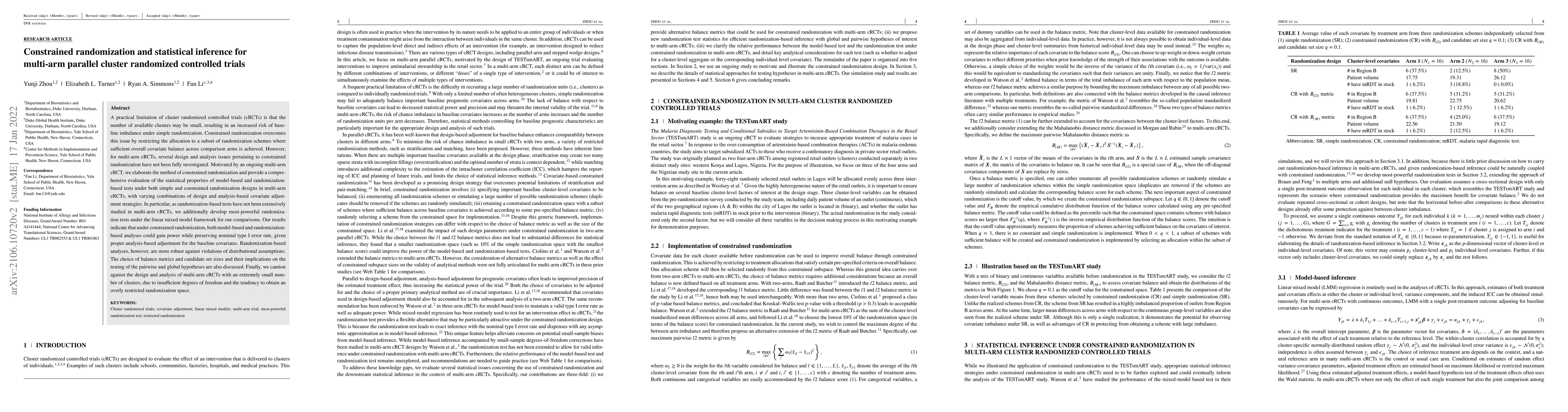 This paper explores constrained randomization methods to address baseline imbalance in multi-arm cluster randomized controlled trials (cRCTs) and evaluates statistical inference under both model-based and randomization-based tests. The study finds that constrained randomization can enhance power while maintaining type I error rates, with randomization-based tests showing greater robustness to assumption violations.