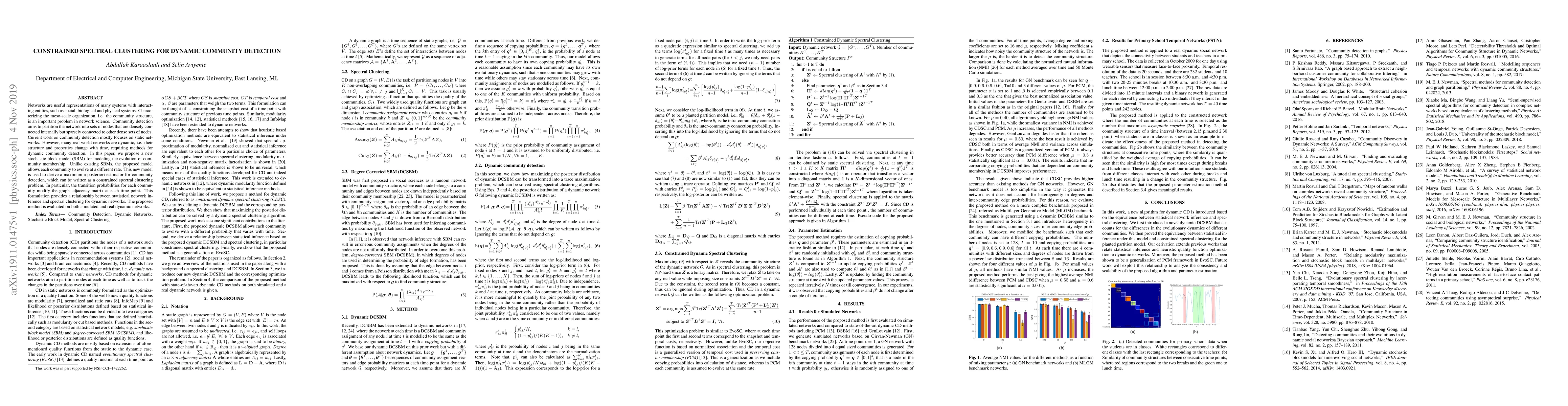 This paper introduces a novel constrained spectral clustering approach for dynamic community detection in evolving networks, proposing a stochastic block model that allows for different community evolution rates. The method is evaluated using both simulated and real dynamic networks.