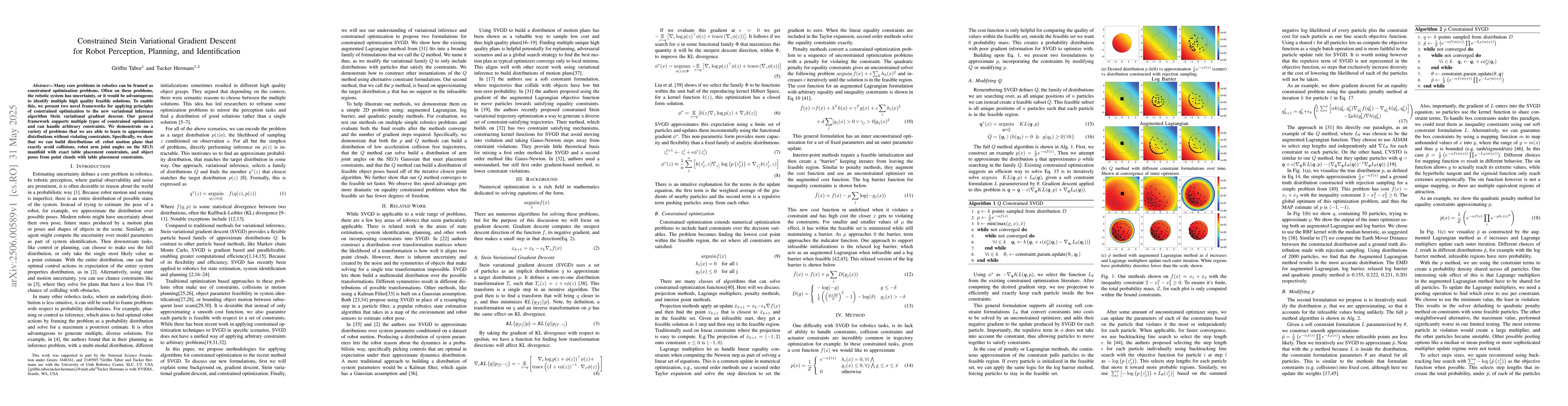 This paper presents a novel framework for applying constrained optimization to Stein variational gradient descent in robotics, enabling the approximation of distributions without violating constraints.
