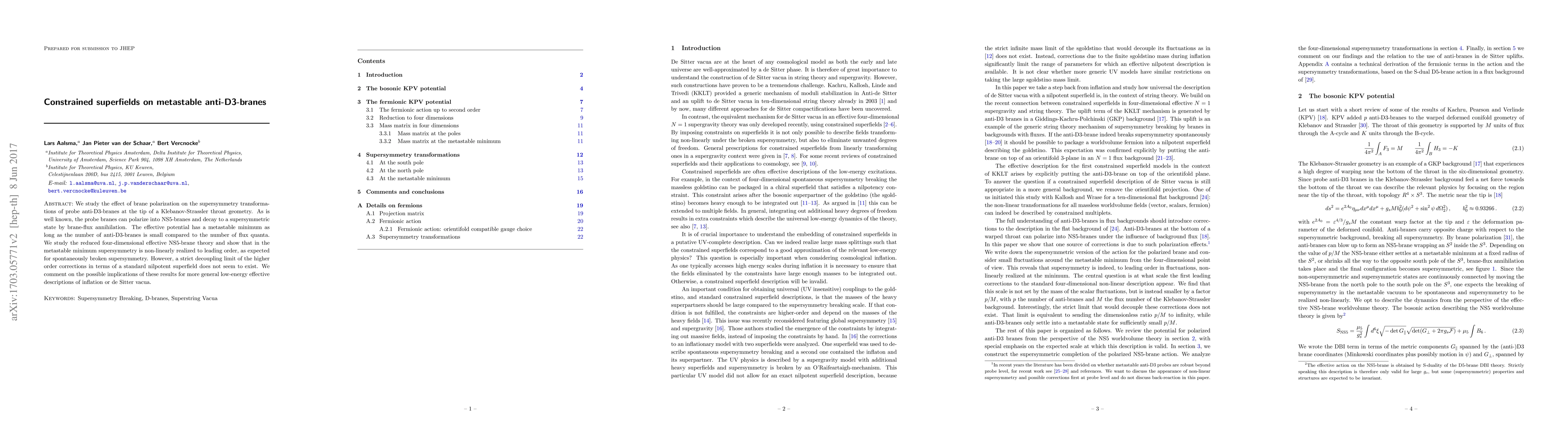 This paper investigates the effect of brane polarization on anti-D3-branes in Klebanov-Strassler throat geometry, revealing a metastable minimum where supersymmetry is non-linearly realized. It finds no standard nilpotent superfield decoupling limit for higher-order corrections, with implications for low-energy effective descriptions of cosmological inflation or de Sitter vacua.